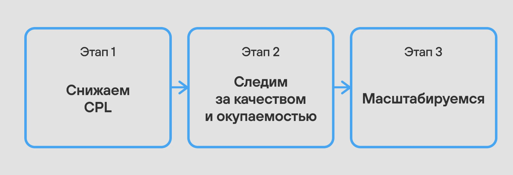 После того как CPL удалось снизить в 2,5 раза и закрепить результат, мы пошли вглубь процессов: