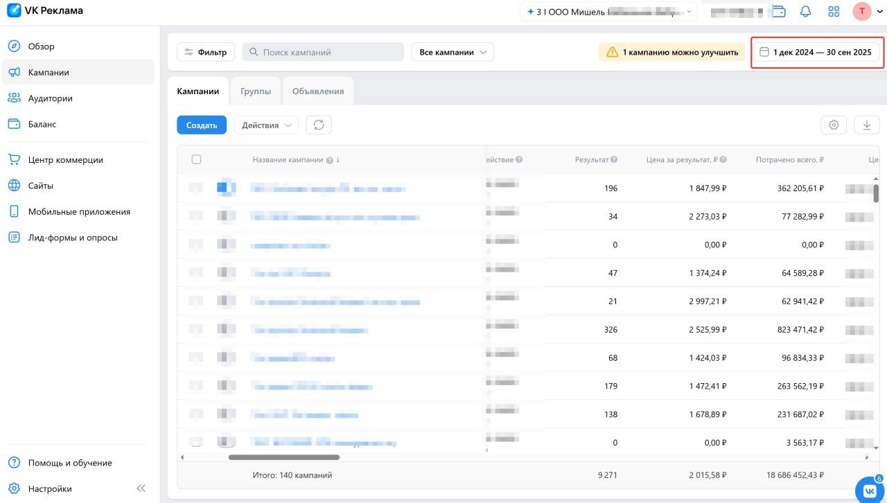 Общая сумма затрат по старому кабинету ВК и Vk Ads (декабрь 2024 — сентябрь 2025): более 20 000 000 ₽