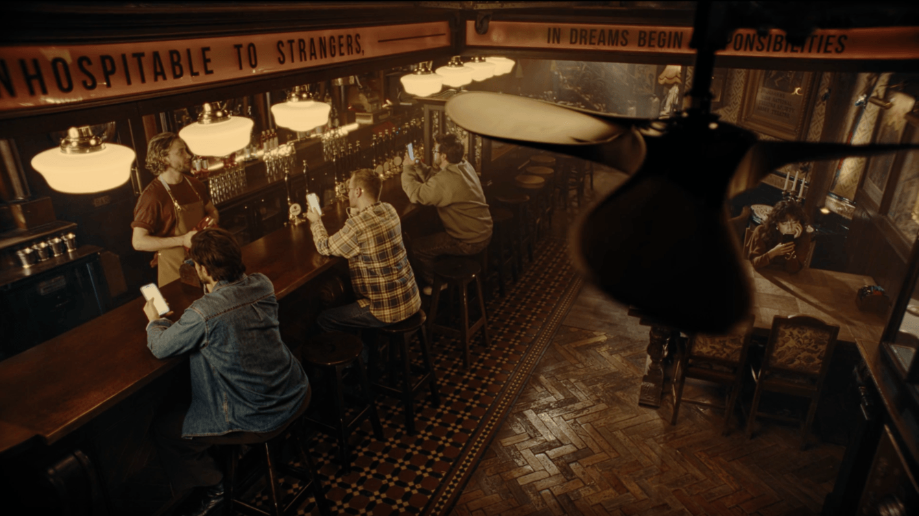 Идея ролика строится на контрасте: люди постоянно находятся в информационном потоке, но чувствуют себя одиноко из-за дефицита живого общения. Каждому иногда нужно напоминание о ценности реального мира вне цифрового. Поэтому мы решили показать в рекламе Gallagher актуальную проблему современного общества, где бармен становится проводником героев в реальность.