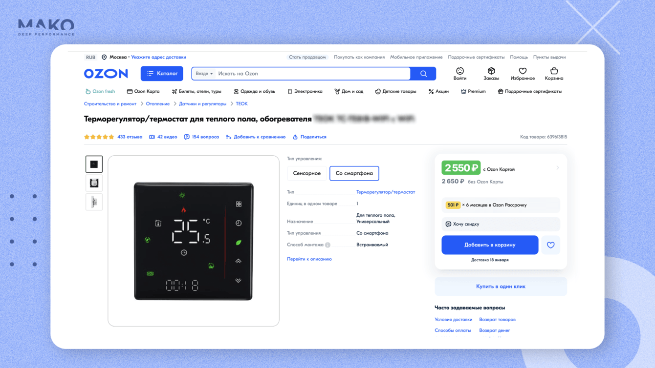 Наш клиент уже несколько лет продает инженерные системы для дома на своем сайте. В конце 2022 года решил выйти на Ozon чтобы увеличить продажи в высокий сезон, который длится для терморегуляторов с октября по март.