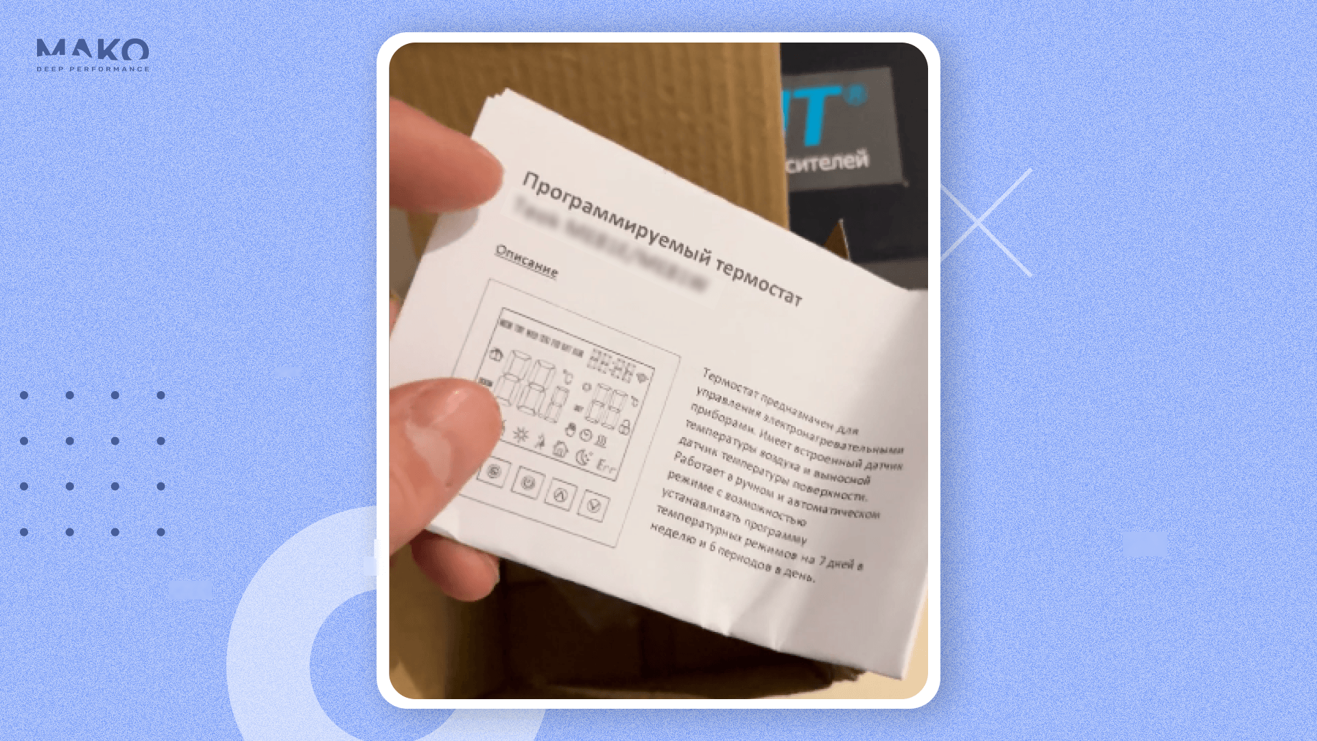 Как правило, терморегуляторы производятся в Китае и приходят в Россию с руководством на китайском и английском языках. Простому обывателю, не владеющему ими, сложно разбираться с такой «китайской грамотой». Ему нужна доступная подача информации, которую продавцы товаров почему-то не предоставляли. Мы предложили нашему клиенту перевести руководство на русский язык, использовали полученную информацию в карточке и вкладывали распечатку в упаковку с товаром. В этом тоже выгодно отличились от конкурентов.