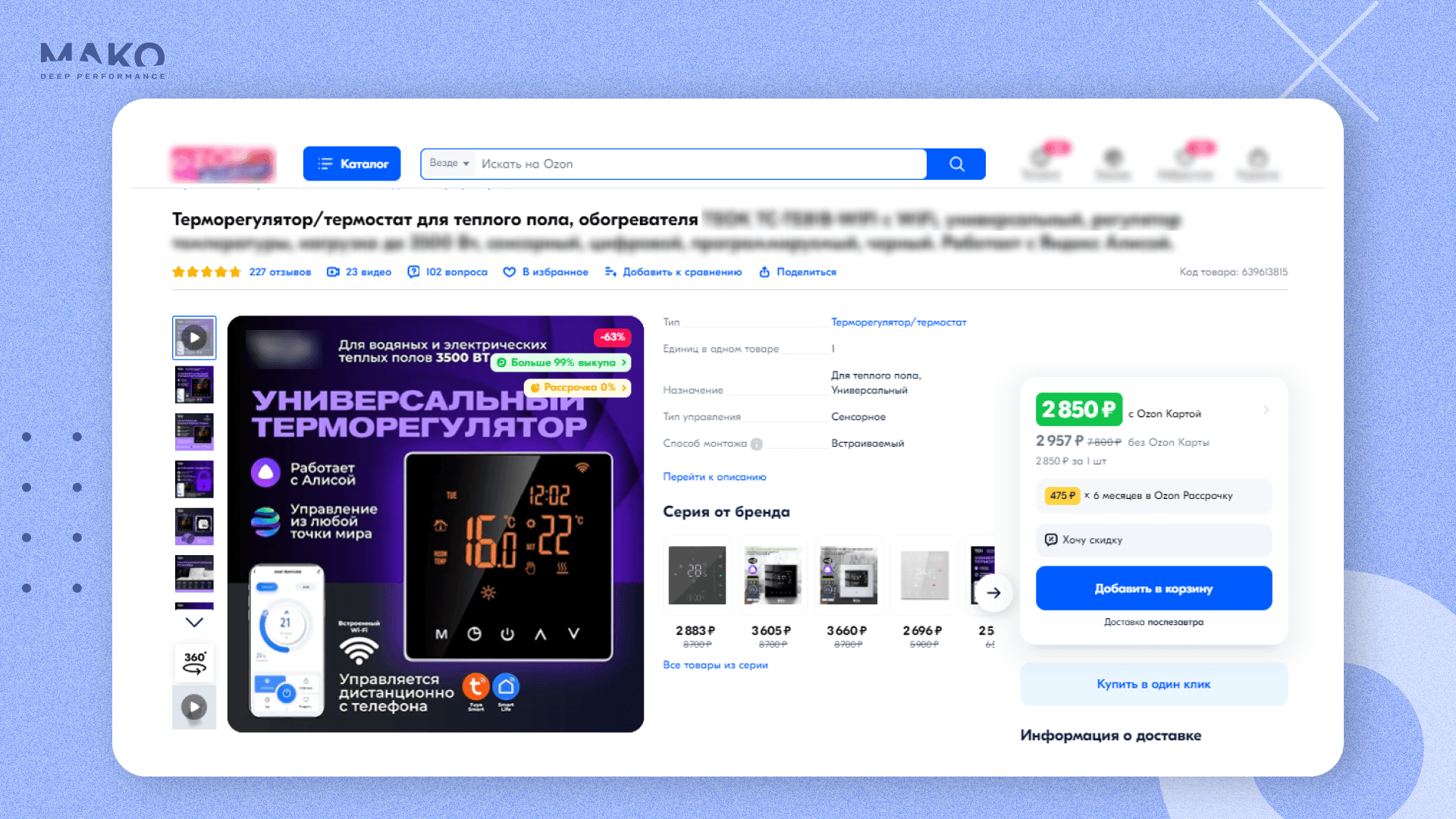 Наш клиент уже несколько лет продает инженерные системы для дома на своем сайте. В конце 2022 года решил выйти на Ozon чтобы увеличить продажи в высокий сезон, который длится для терморегуляторов с октября по март.