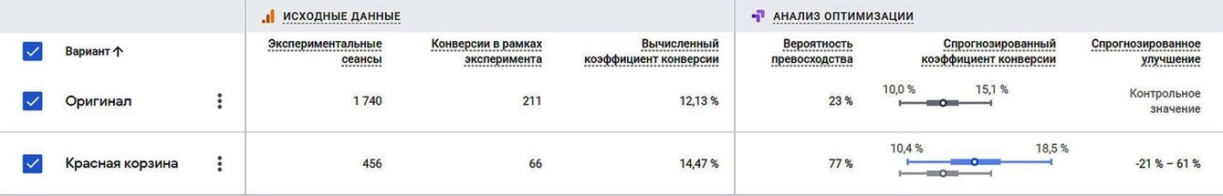 Получили высокую вероятность превосходства и сделали показ красной корзины для всех пользователей.