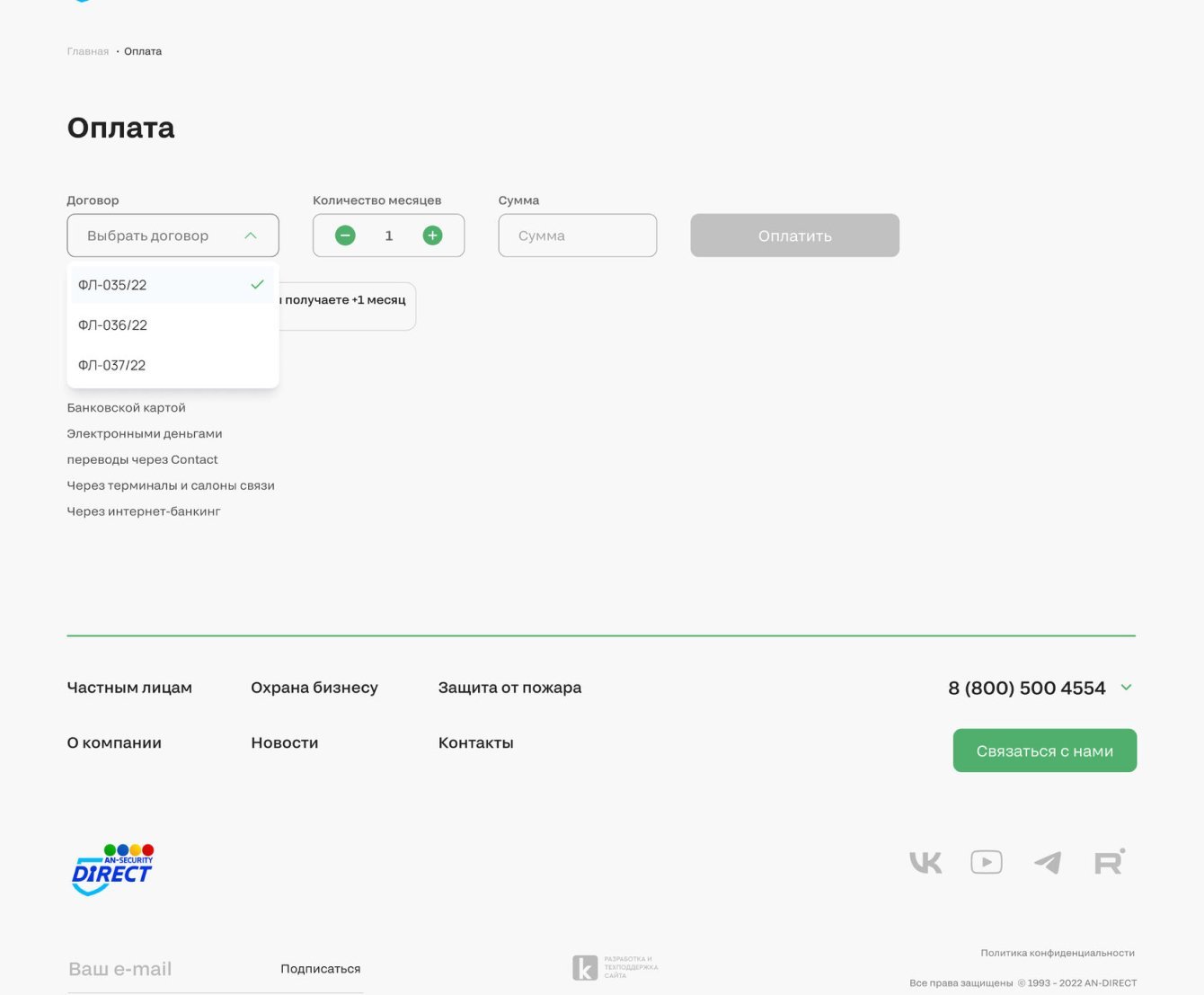- Клиенты заказчика получили удобный инструмент для проведения оплаты по договорам