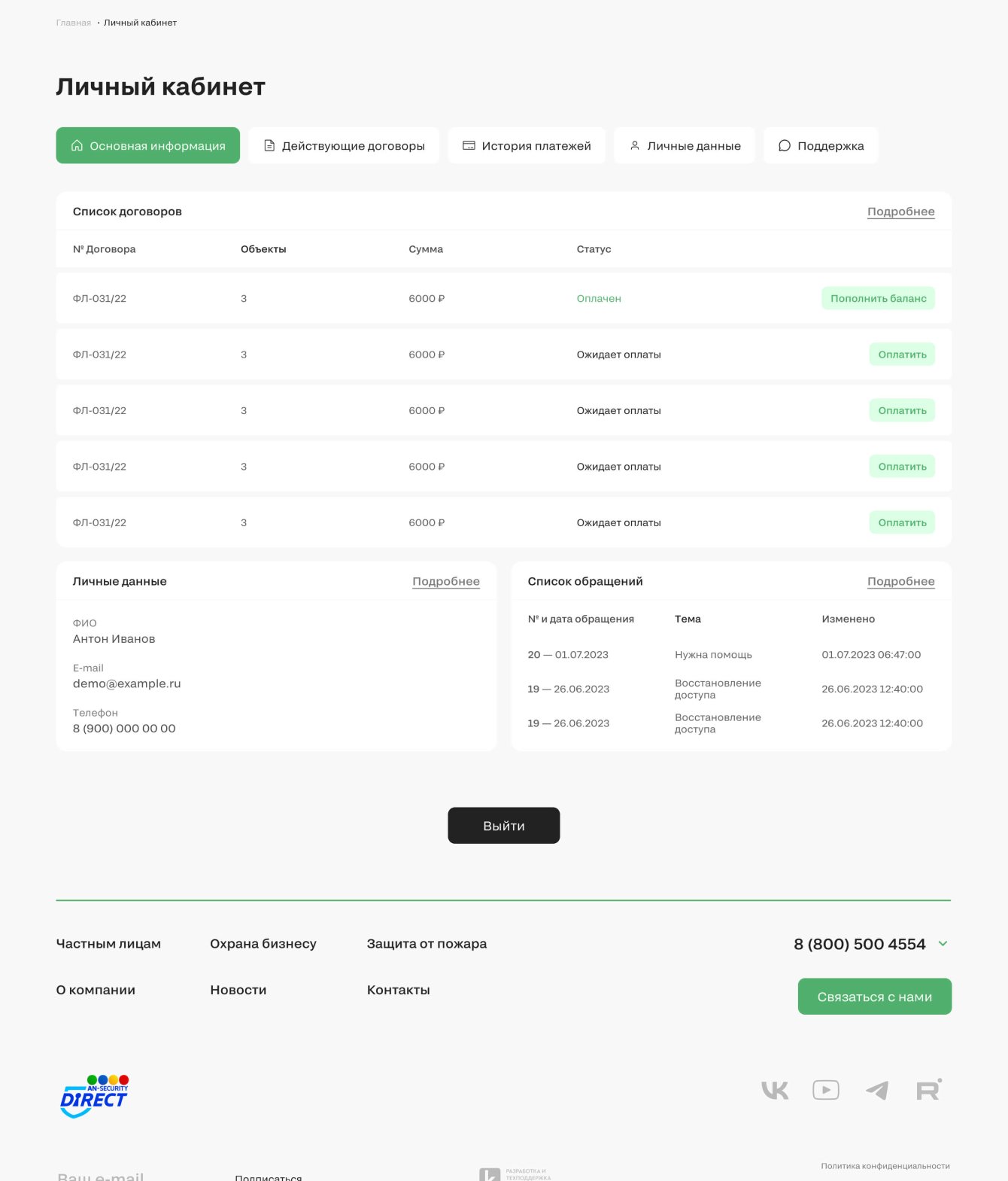На главной странице личного кабинета собрана сводная информация из основных разделов сайта, что делает работу пользователя максимально удобной и понятной.