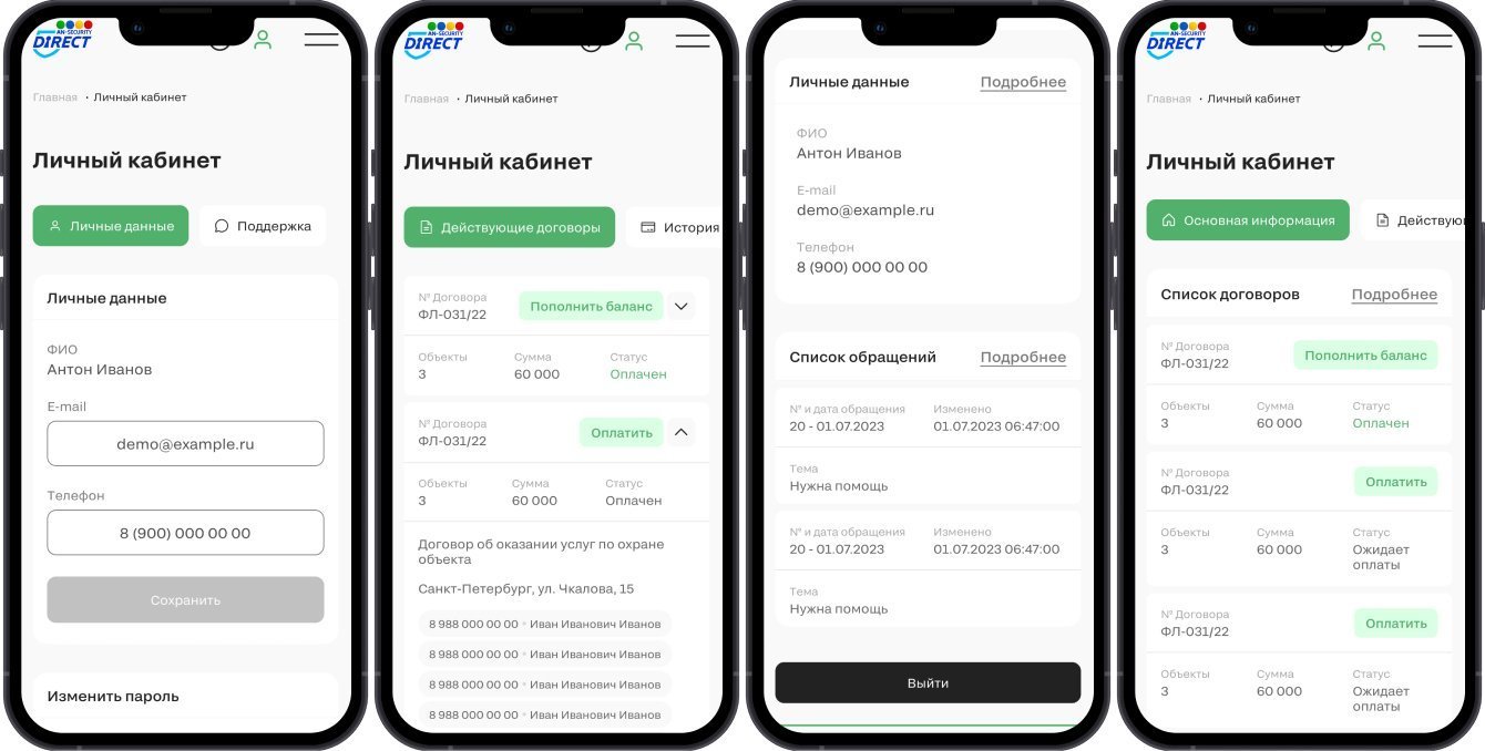 Мы уделили особое внимание мобильной версии сайта, чтобы пользователи могли с комфортом работать с личным кабинетом на любых устройствах — смартфонах, планшетах и компьютерах.