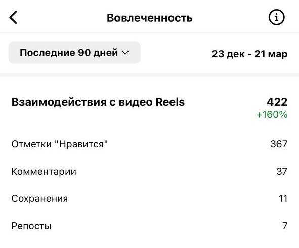 — внедрен формат регулярных reels, вовлеченность за последние три месяца выросла на 160%