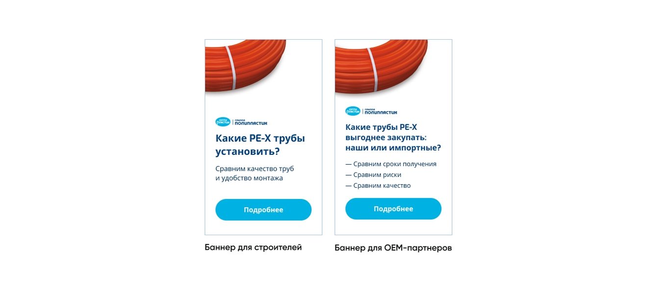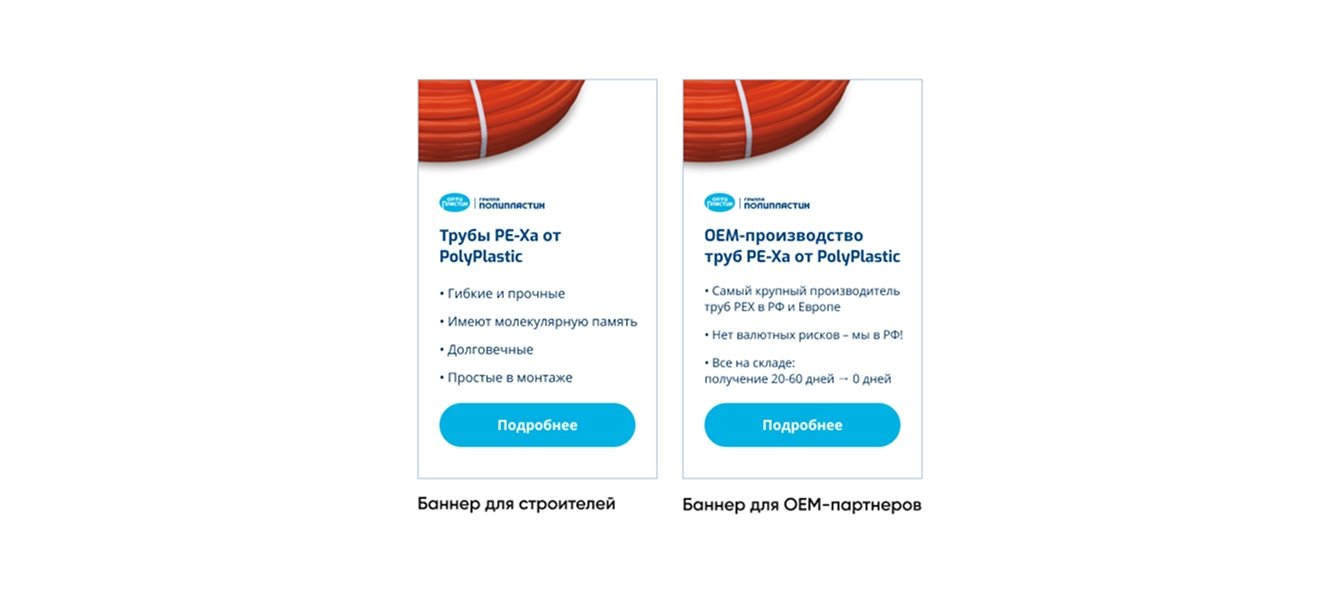 Для продвижения производственной компании мы запустили рекламу на лендинги — создали цепочку касаний. Показывали баннеры, чтобы зацепить внимание. Увидевшим первый баннер, показывали второй — с преимуществами. Одновременно занимались поисковым продвижением.