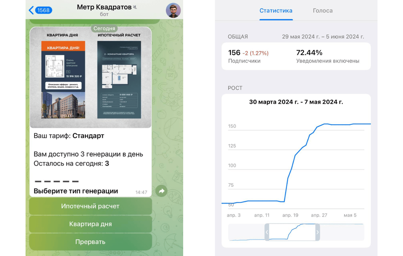 Самого бота можно протестировать тут: https://t.me/Metr_kvadratov_bot