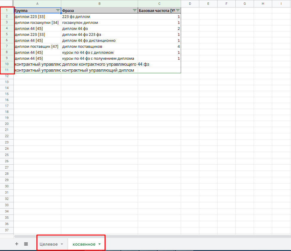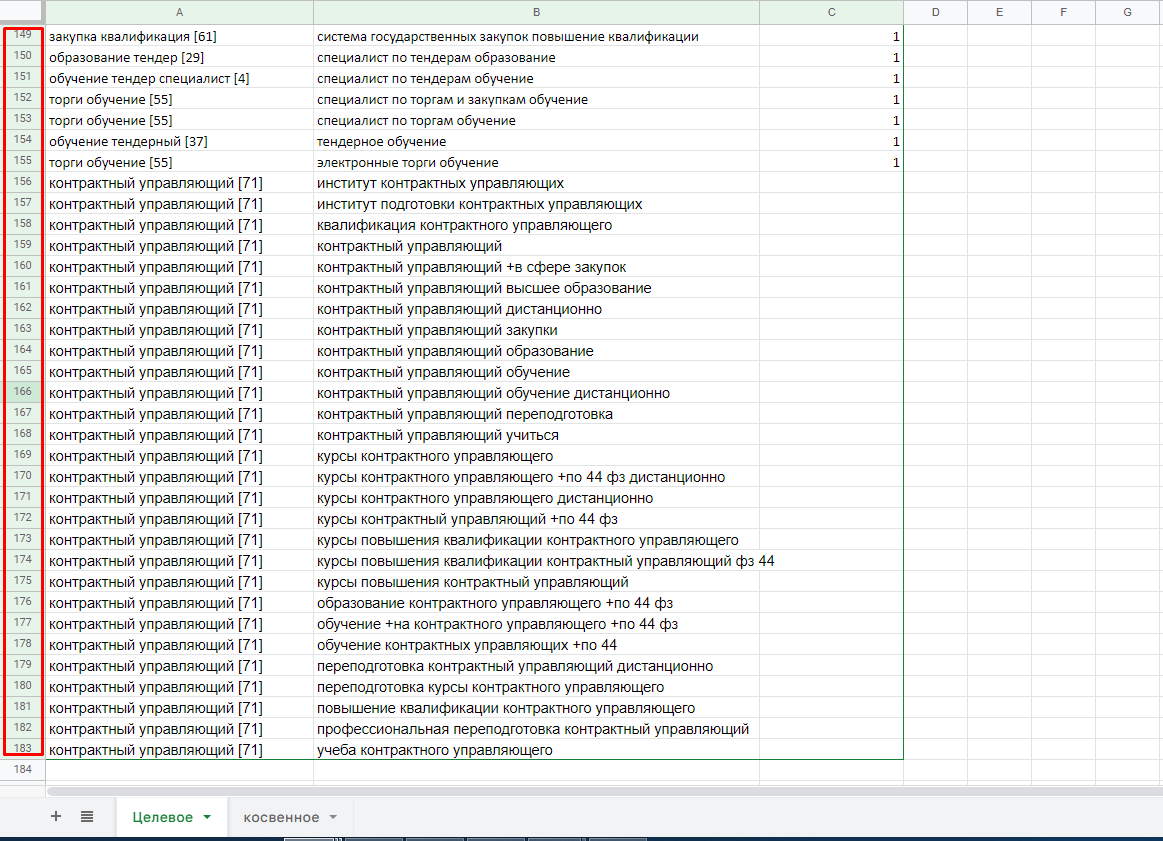 2. Тщательно отминусовали все ключи, которые нам не подходят/не целевые/не отражают сути нашего УТП и т.д.