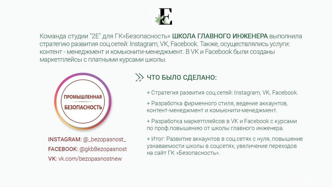Итог: Развитие аккаунтов в соц.сетях с нуля, повышение узнаваемости школы в соцсетях, увеличение переходов на сайт ГК «Безопасность».