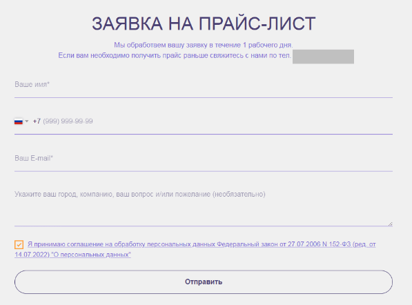 Форма обратной связи была перегружена большим количеством обязательных полей с запросом информации, которую и так могли запросить менеджеры при знакомстве с потенциальным клиентом.