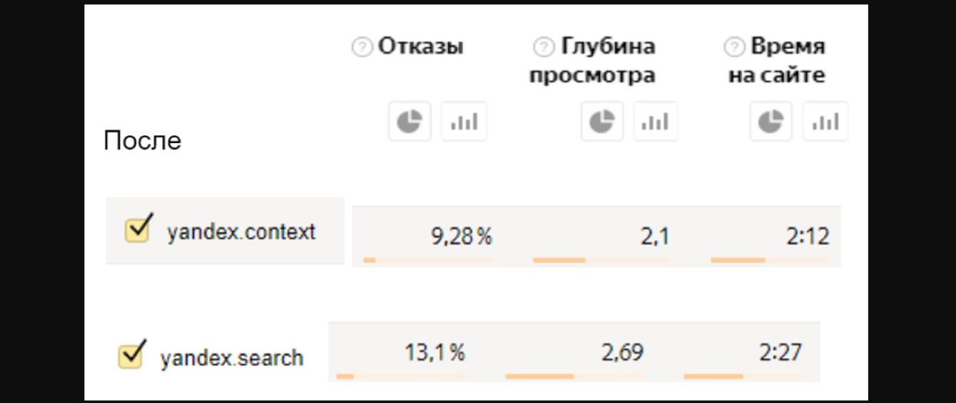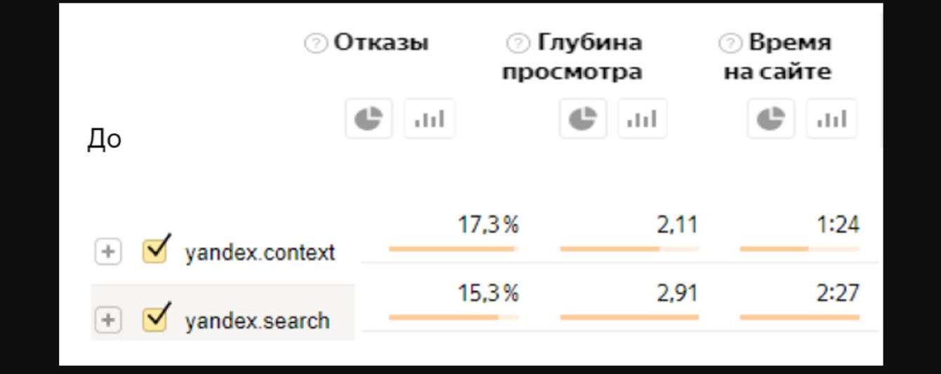 - снизить отказы по контекстной рекламе с 17% до 9%, по поисковой - с 15% до 13%.