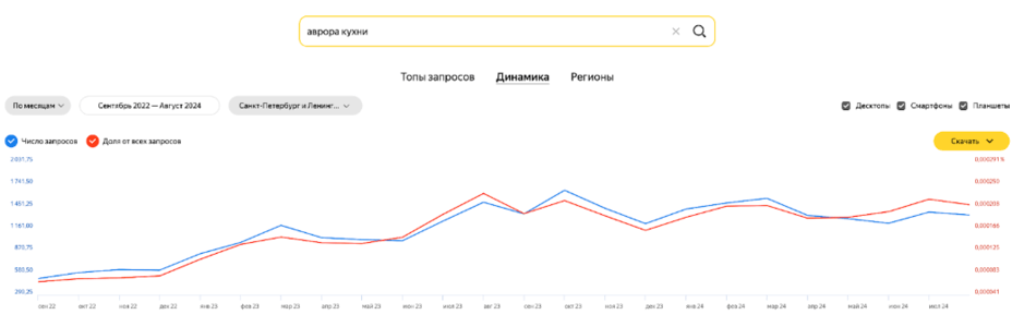 Так и по общедоступной статистике сервиса «Яндекс Вордстат»