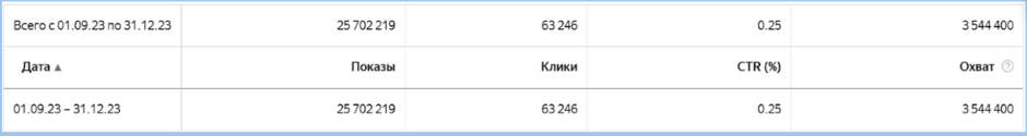 Как видно из статистики, мы получили 49 000 кликов и 7 164 220 охватов. Получили меньшее количество кликов чем в сезон, но это помогло не потерять аудиторию и занести ее в базу для ретаргетинга.