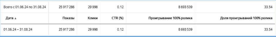 В результате проигрываний ролика было 8 693 539, что составило 33,54% от общего количества показов.