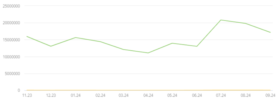 Вывод: После запуска медийной рекламы наблюдается стабильный рост брендовых запросов. Это приводит к росту конверсий на сайте клиента и спаду стоимости заявок с сайта.