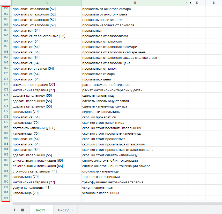 3. Тщательно отминусовали все ключи, которые нам не подходят/не целевые/не отражают сути нашего УТП и т.д.