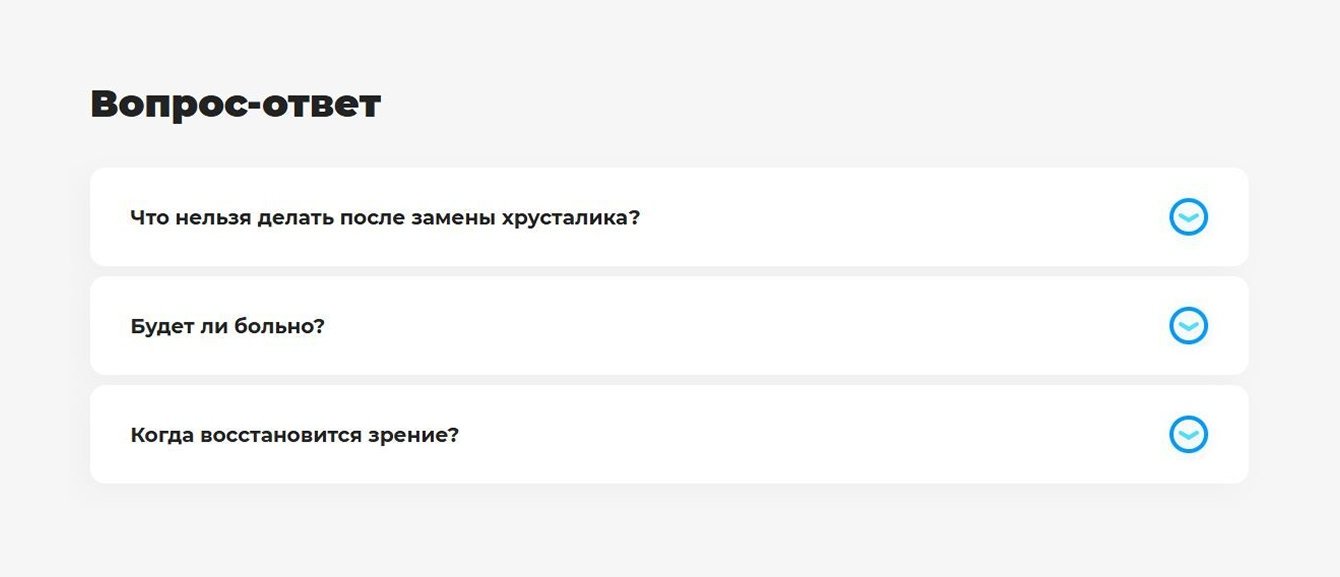 Также добавили региональные ключи в разделы «Вопрос-ответ», чтобы усилить релевантность страницы для пользователей из выбранного города.
