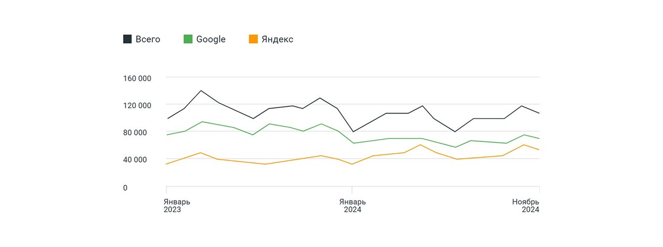 Общий трафик зависит не только от продвижения, но и от рыночных тенденций. В 2024 году спрос на офтальмологические услуги снизился на 9,5% по сравнению с 2023: