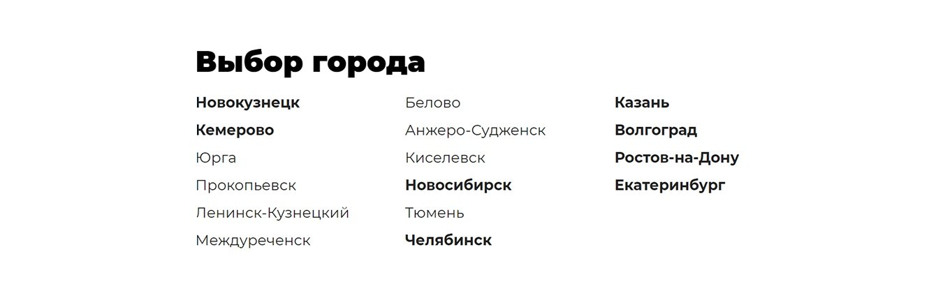 Мы вписали в заголовки, подзаголовки и тексты названия городов. Это помогает поисковым системам распознать, для какого региона предназначена информация. Чем точнее ключи, тем лучше позиции страницы в поиске и больше трафика из нужного города.