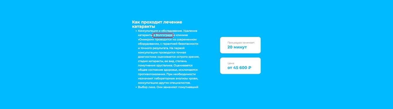 *Так выглядит описание лечения катаракты для жителей Волгограда.