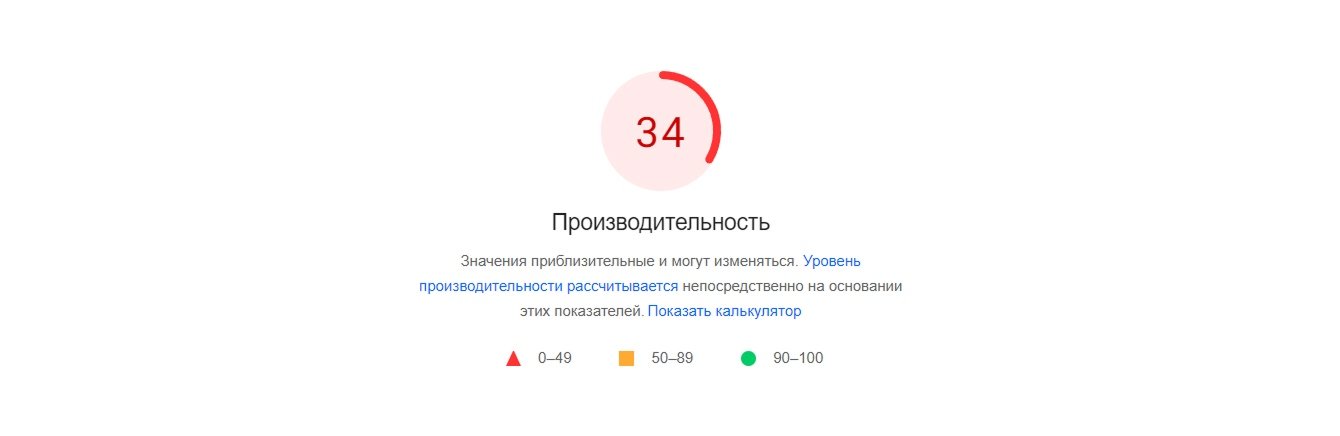 *Главная страница набрала всего 34 из 100 баллов по скорости загрузки