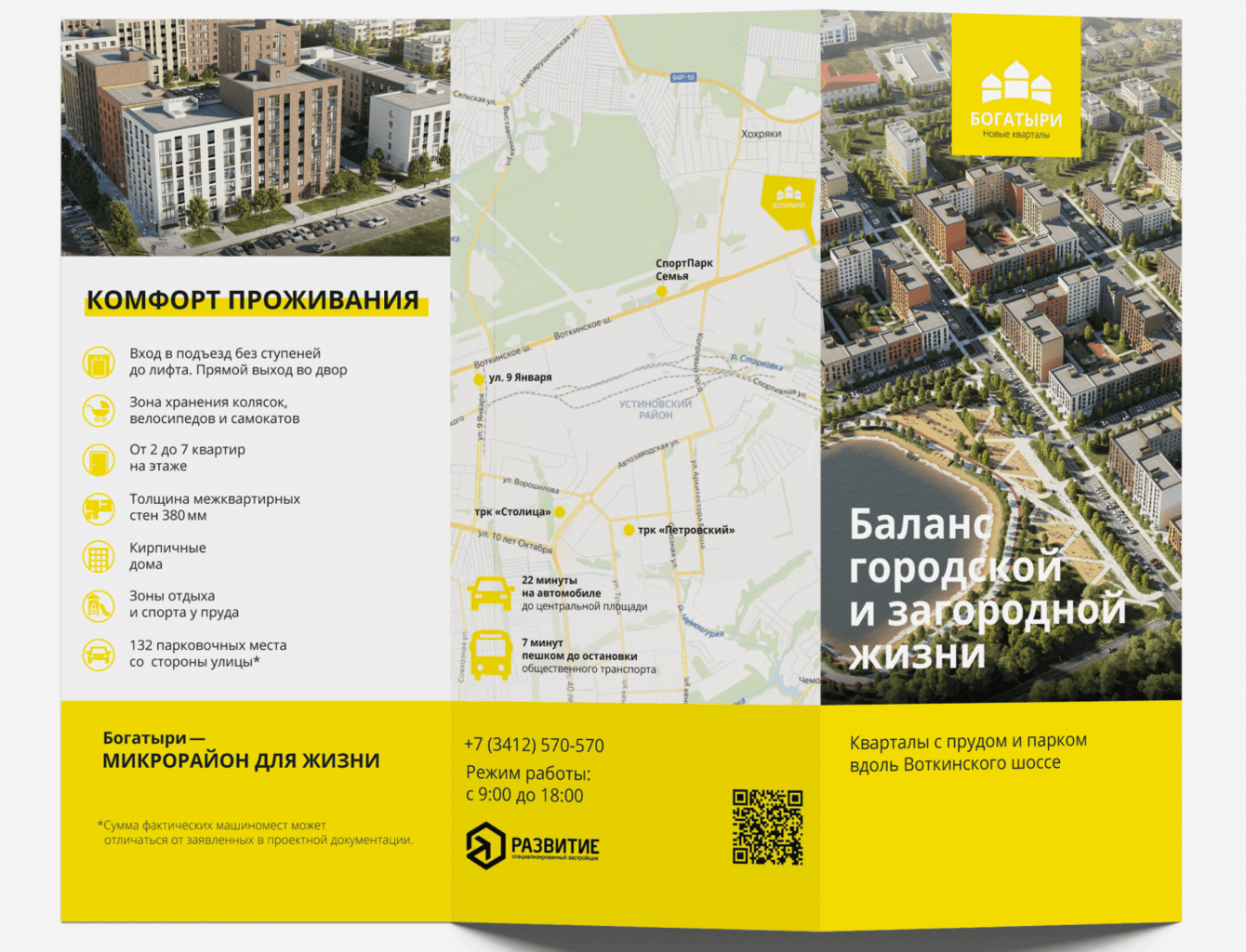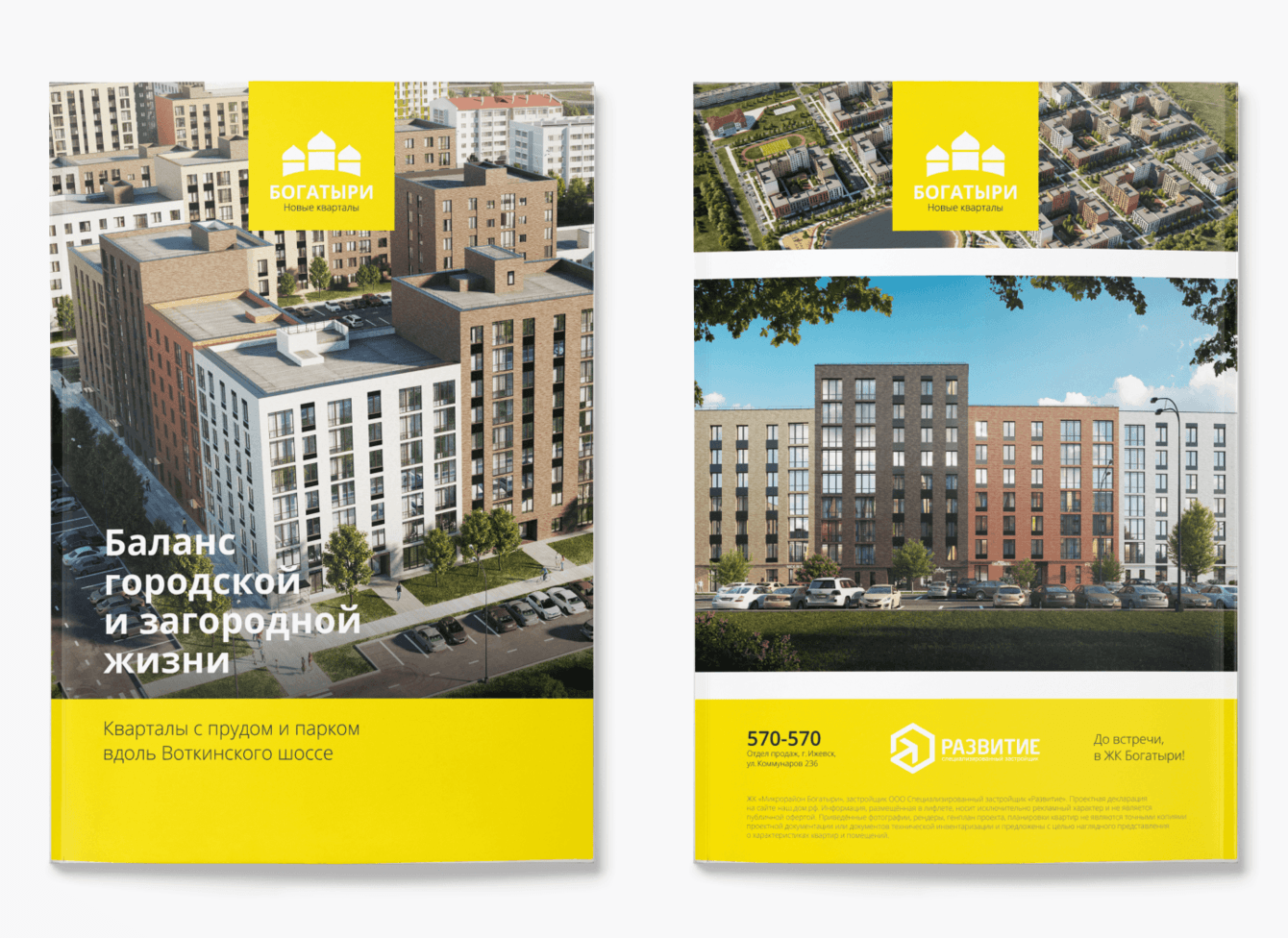 В буклете и дальнейших материалах нам удалось в одной стилистике передать Европейскую архитектуру микрорайона перекликающуюся с экологичностью и природными возможностями местности.