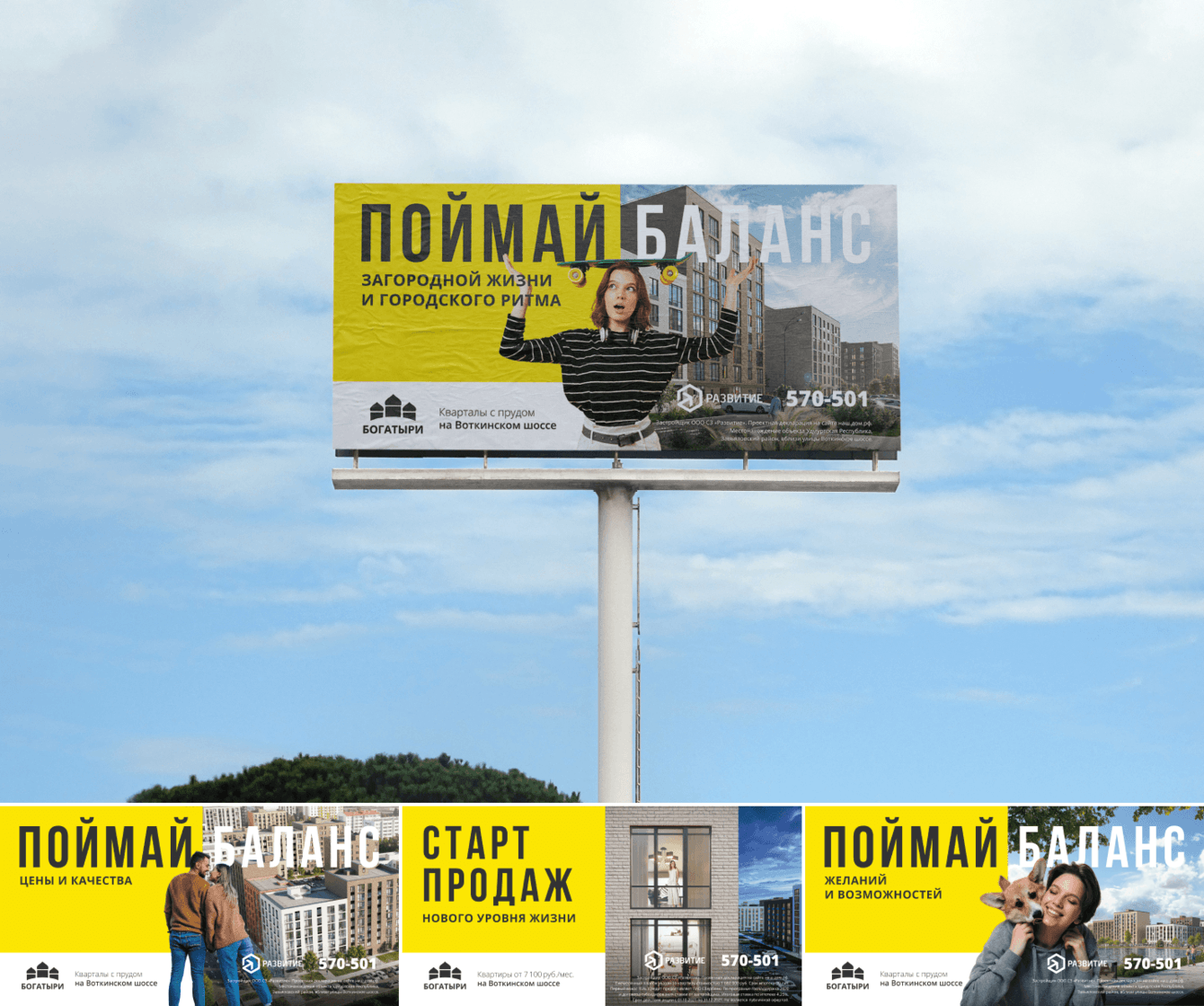 Основная идея заключается в фирменном слогане, который отражает ключевые плюсы для покупателей. “Поймай баланс городской и загородной жизни” — это то, чему покупатели придают всё больше значения. Сейчас каждому важна чистота и экологичность жизни, при этом используя все плюсы городского ритма. Поймай баланс — основная мысль всего, что нас окружает.