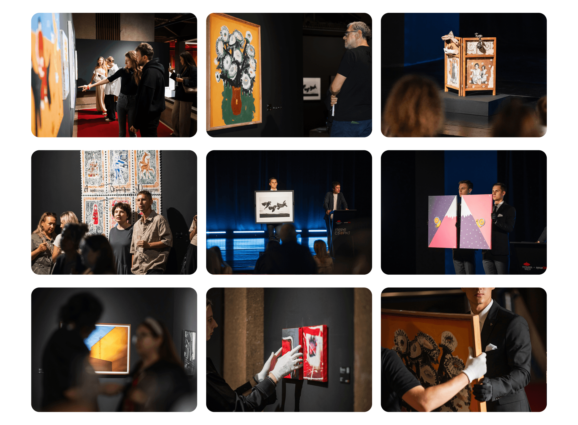 Когда пришло время продвигать предаукционную выставку и сам аукцион ПЕРЕСБОРКА, мы начали с визуальной составляющей. Для проекта разработали баннеры и печатные материалы. Параллельно занялись каталогом аукционных лотов. Сделали его дизайн и вёрстку для частной рассылки коллекционерам.