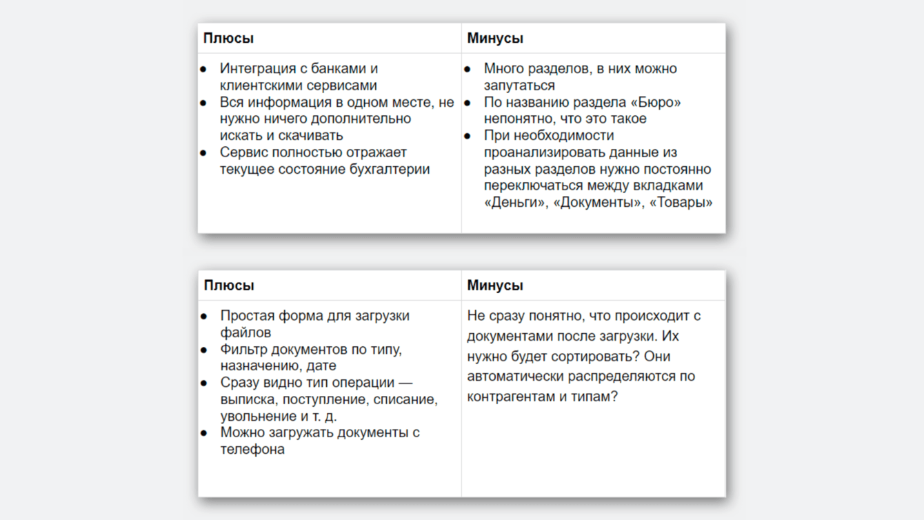 В итоге разобрались, что думают сейчас о продукте клиенты, насколько это соотносится с идеей разработчиков и маркетологов, чего клиентам не хватает в работе сервиса. Разбирали отдельно каждую составляющую сервиса.