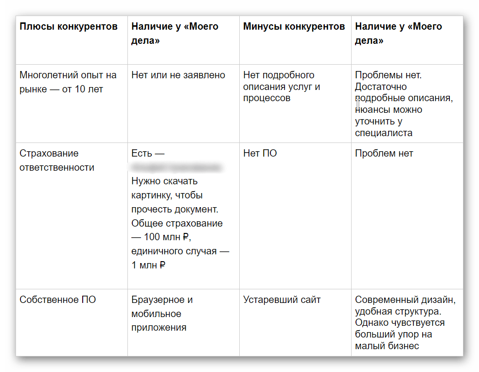 2. Анализ конкурентов, сравнение с ними, выявление плюсов и минусов