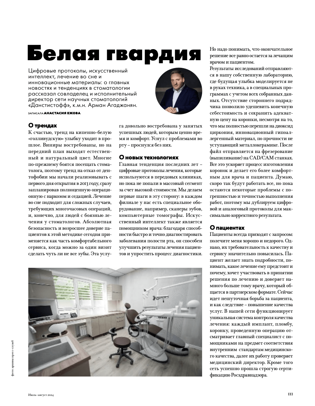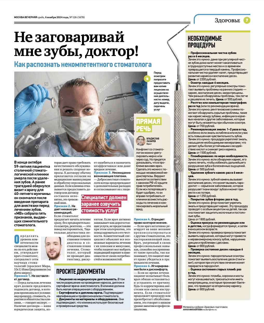 Разработана PR-стратегия, в рамках которой мы подобрали релевантные СМИ (как глянец и лайстайл, так и федеральные СМИ и профильные издания), а также разработан пул тематик для публикаций, который включает публикации на продвижение личного бренда владельцев стоматологий и экспертные публикации