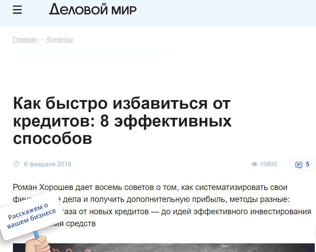 • Деловой мир. Как быстро избавиться от кредитов: 8 эффективных способов