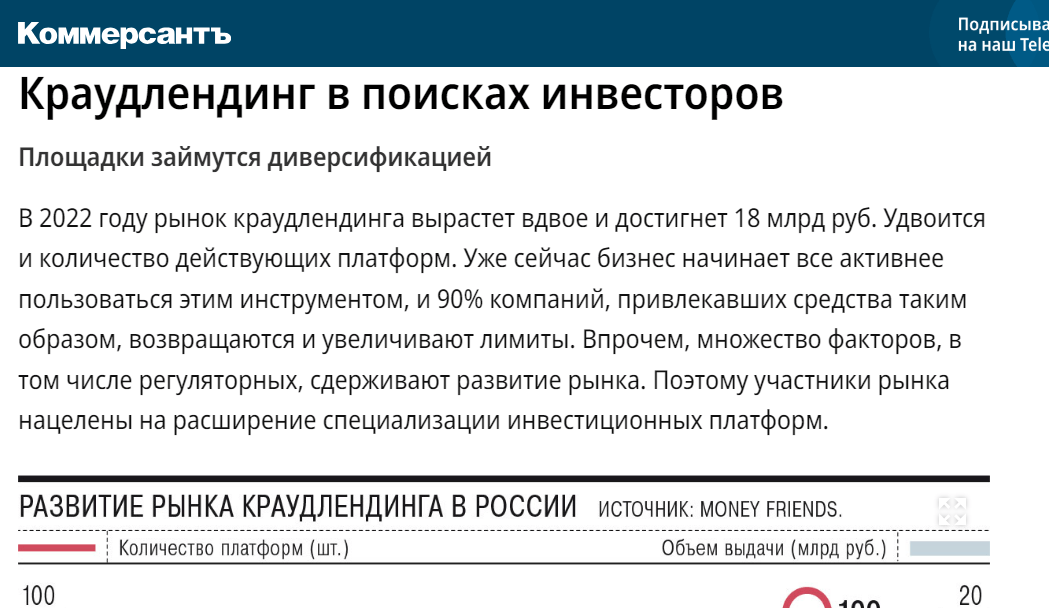 • Коммерсант. Краудлендинг в поисках инвесторов