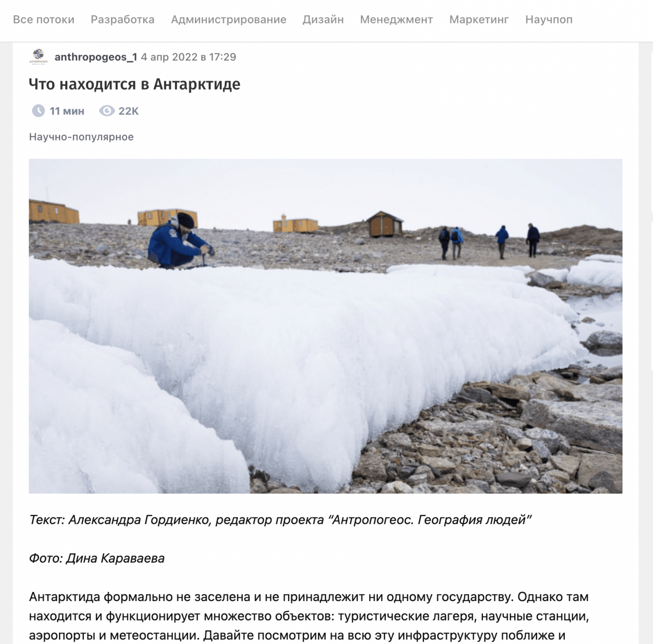 Антропогеос — это некоммерческий научно-популярный проект. Главный редактор вместе с разными командами участников, среди которых ученые, исследователи, художники, поэты, фотографы, организует экспедиции в разные части мира.