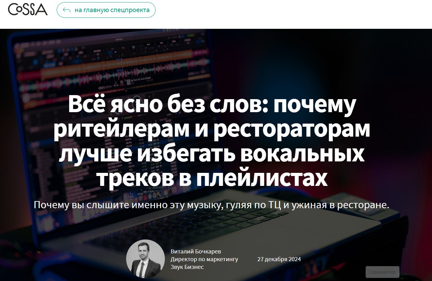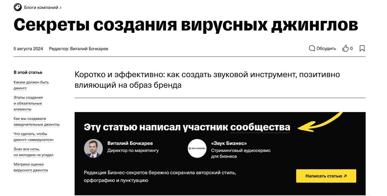 Изначально: рассказать предпринимателям о новом маркетинговом инструменте, который помогает продавать, — стриминговом аудиосервисе для бизнеса (аудиомаркетинг). В дальнейшем при продолжении сотрудничества: поддержание интереса к теме легального музыкального обеспечения и аудиомаркетинга со стороны предпринимателей из разных сфер.