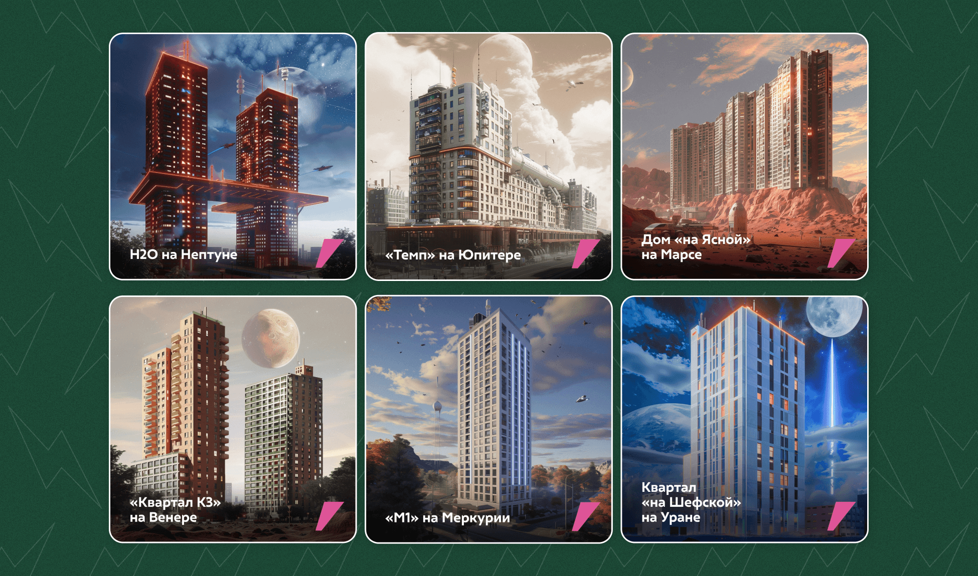 Переселить жилые комплексы на другие планеты, запустить огромных котов исследовать их территорию, отправить между домами огромные пушистые сердца в фирменном розовом цвете — с нейронками и 3D возможно все! Такие развлекательные публикации помогали ненавязчиво рассказать о проекте и бренде в целом.