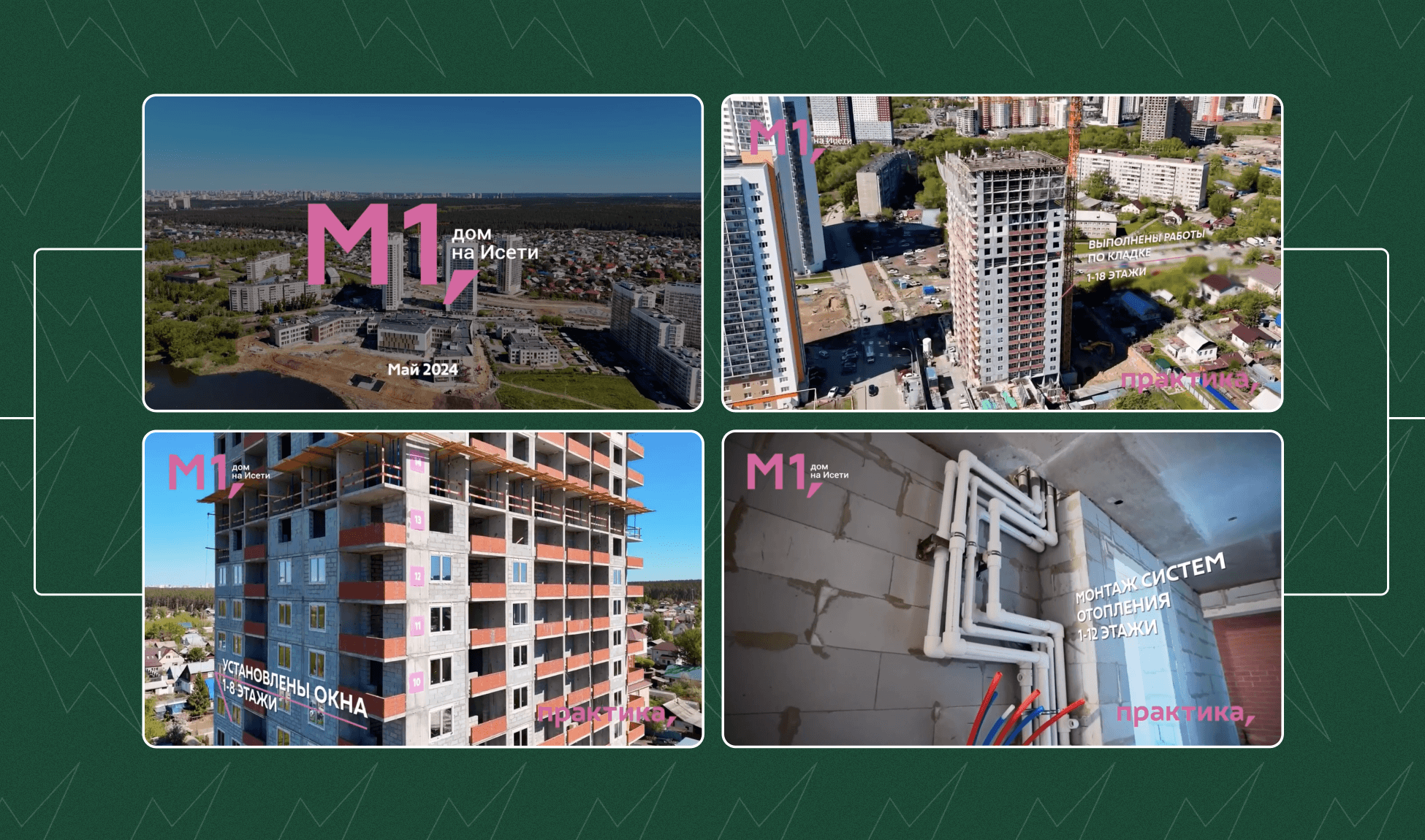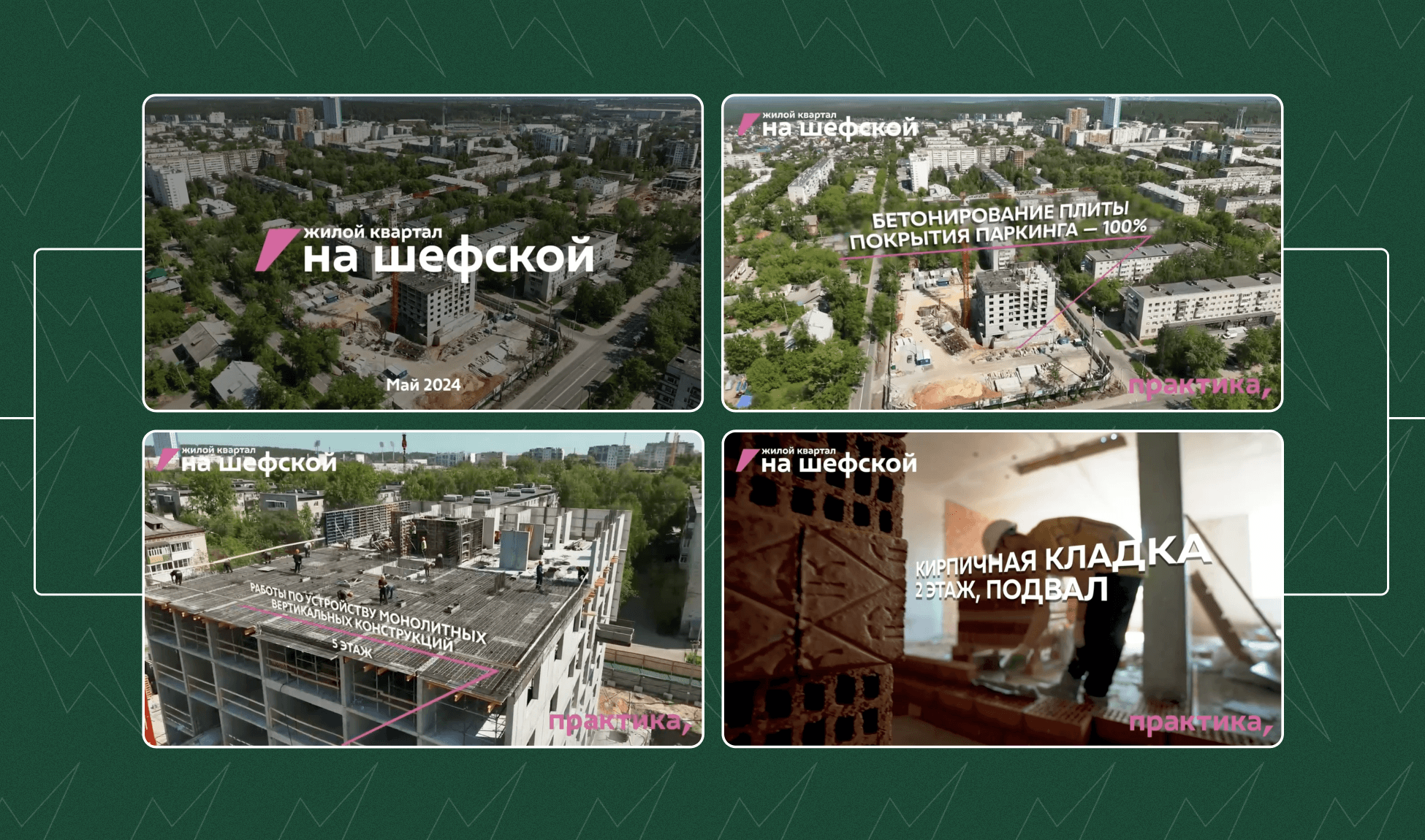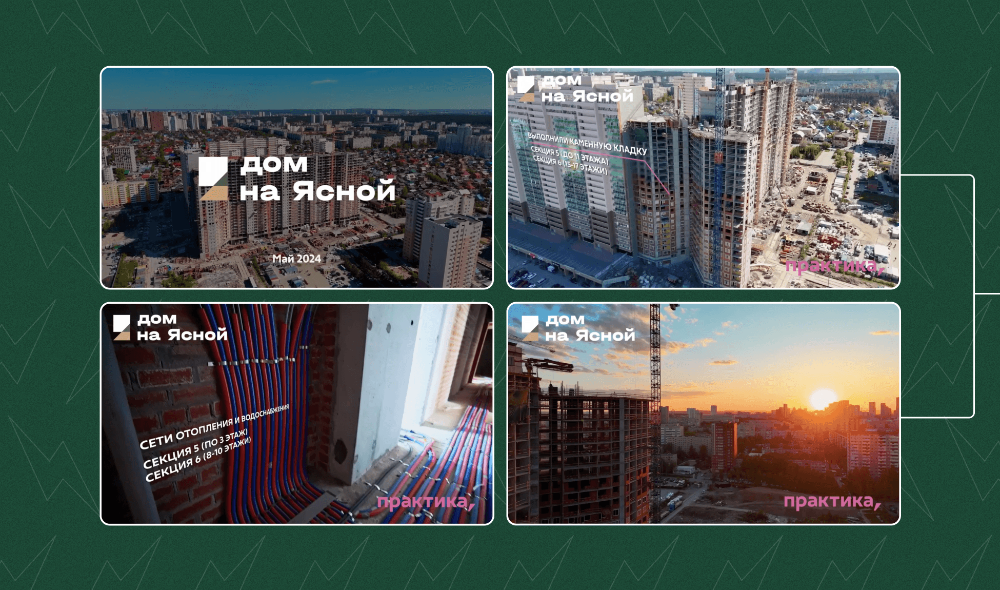 Помимо основного контента мы каждый месяц выпускали по шесть динамик строительства — клиенту было важно делать отдельные публикации для каждого проекта и выпускать их подряд, без задержек.
