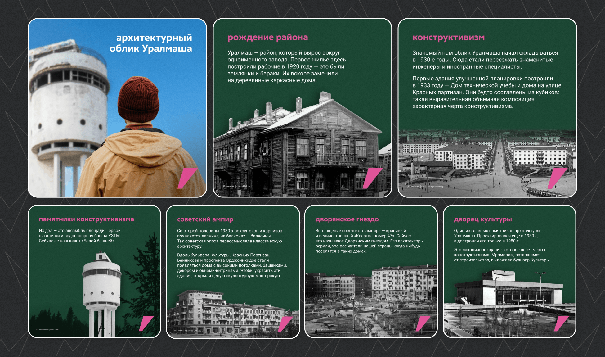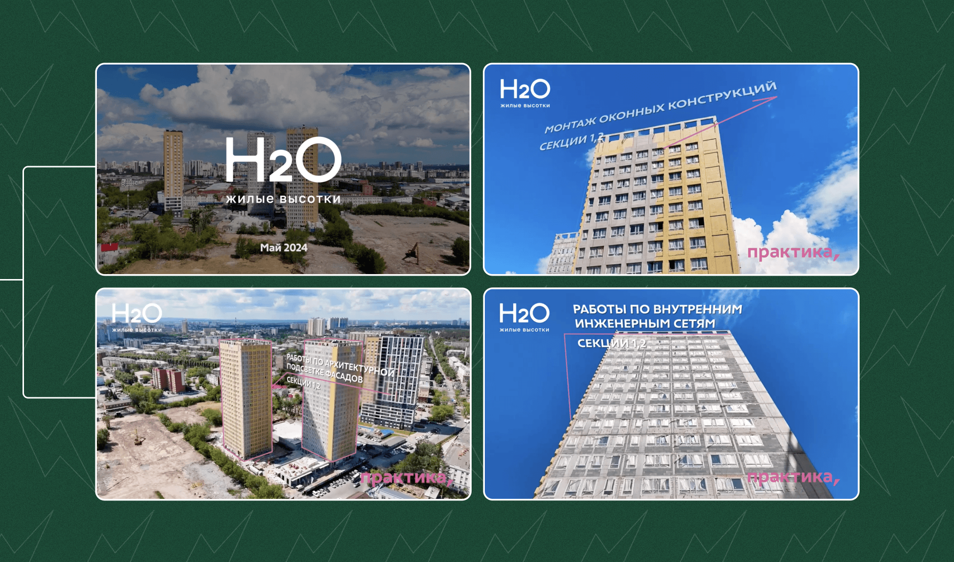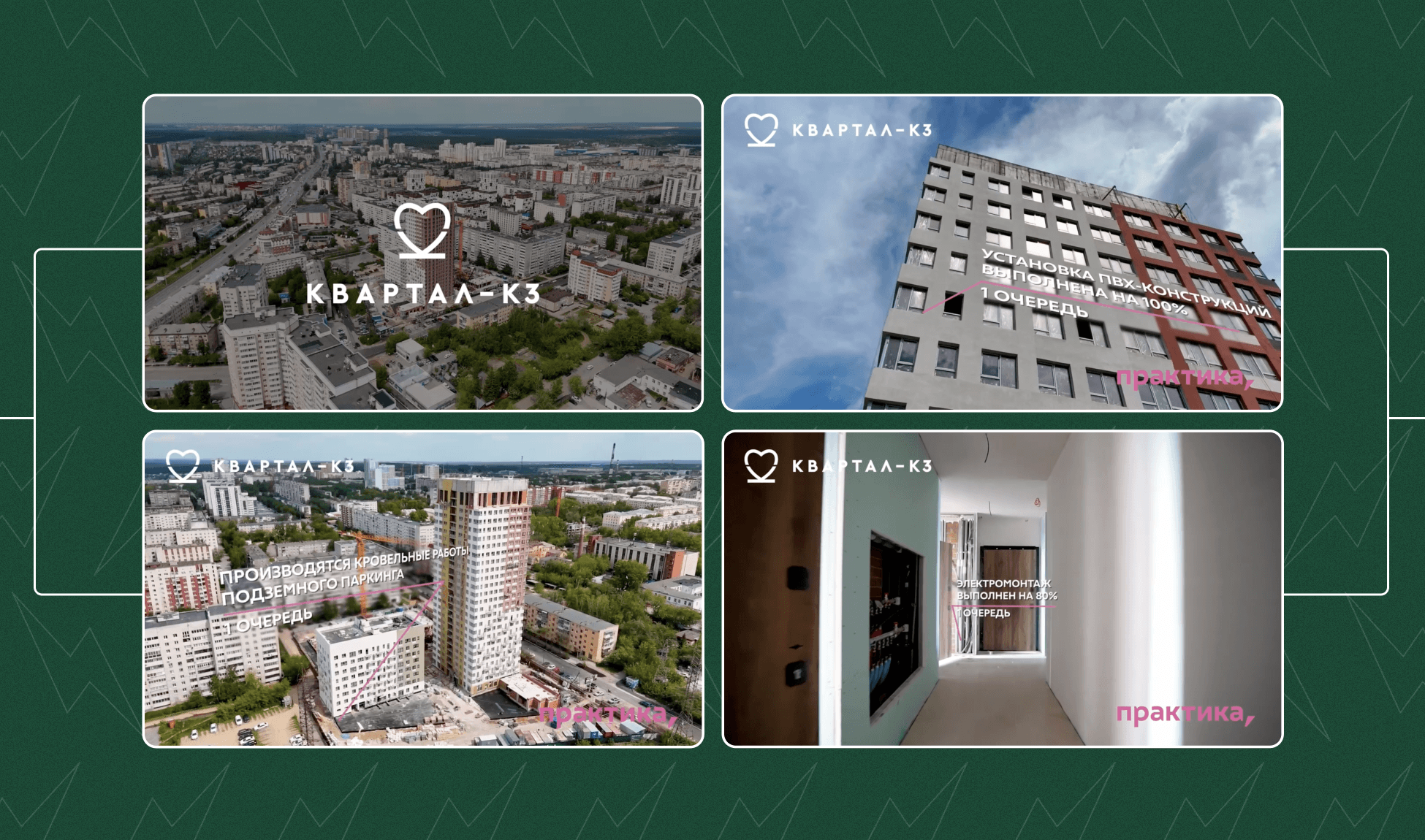 Помимо основного контента мы каждый месяц выпускали по шесть динамик строительства — клиенту было важно делать отдельные публикации для каждого проекта и выпускать их подряд, без задержек.