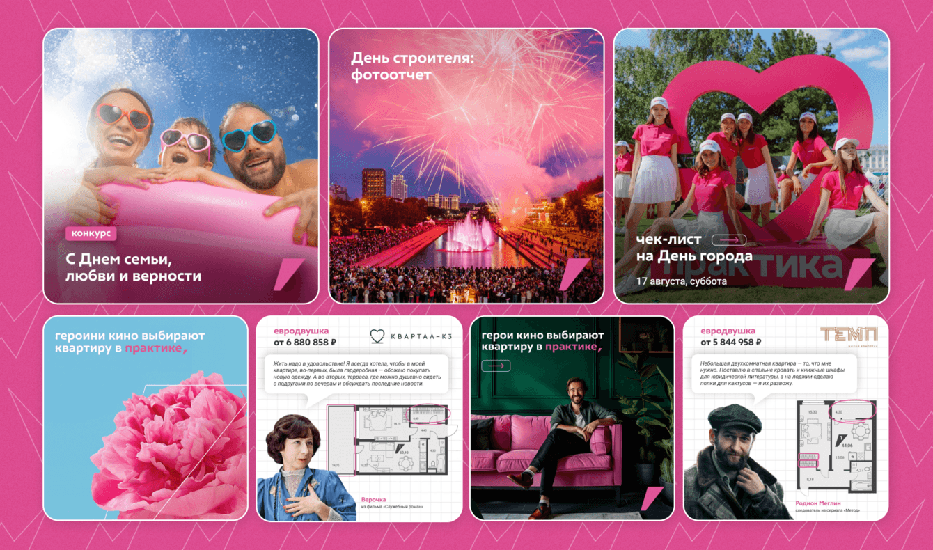 Застройщик активно участвовал в городской жизни и выступал спонсором важных городских мероприятий. Это классные инфоповоды, о которых мы, конечно, говорили, — они собирали много реакций. В дни больших городских праздников, локации «Практики» посещало огромное количество гостей — все эти люди потом искали себя и своих близких на фото в соцсетях.