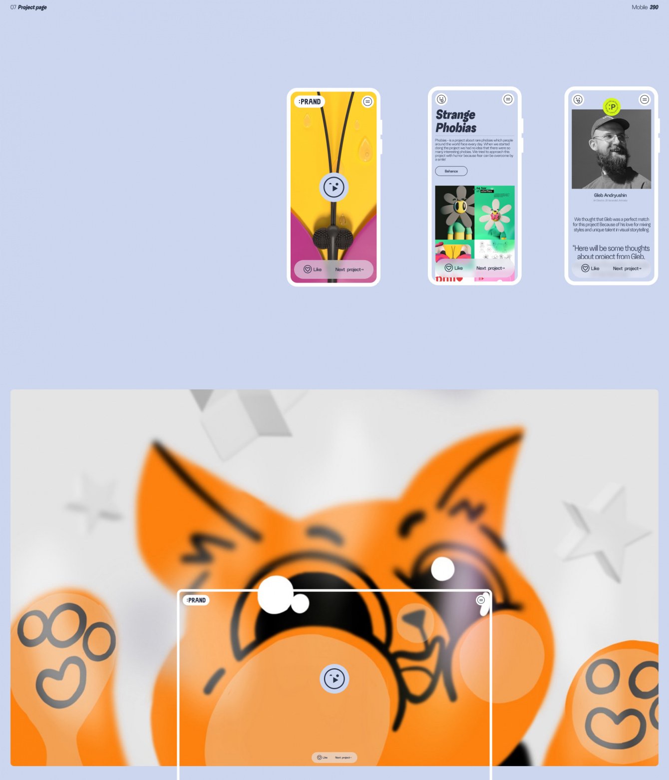 Сотрудничество с “коллегами по цеху” - это всегда большие риски. Все привыкли работать в своем ритме и по своим процессам. Но с ребятами из PRAND мэтч случился моментальный: каждая сторона работала так, как комфортно ей. Ребята помогли нам с анимацией персонажей и еще парочкой идей, а мы все это завернули в крутой сайт.