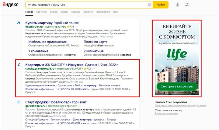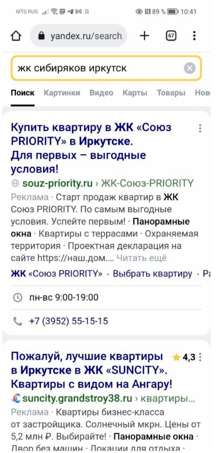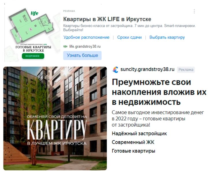 Таким образом реклама нашего ЖК показывалась раньше, чем пользователь видел сайт конкурента.