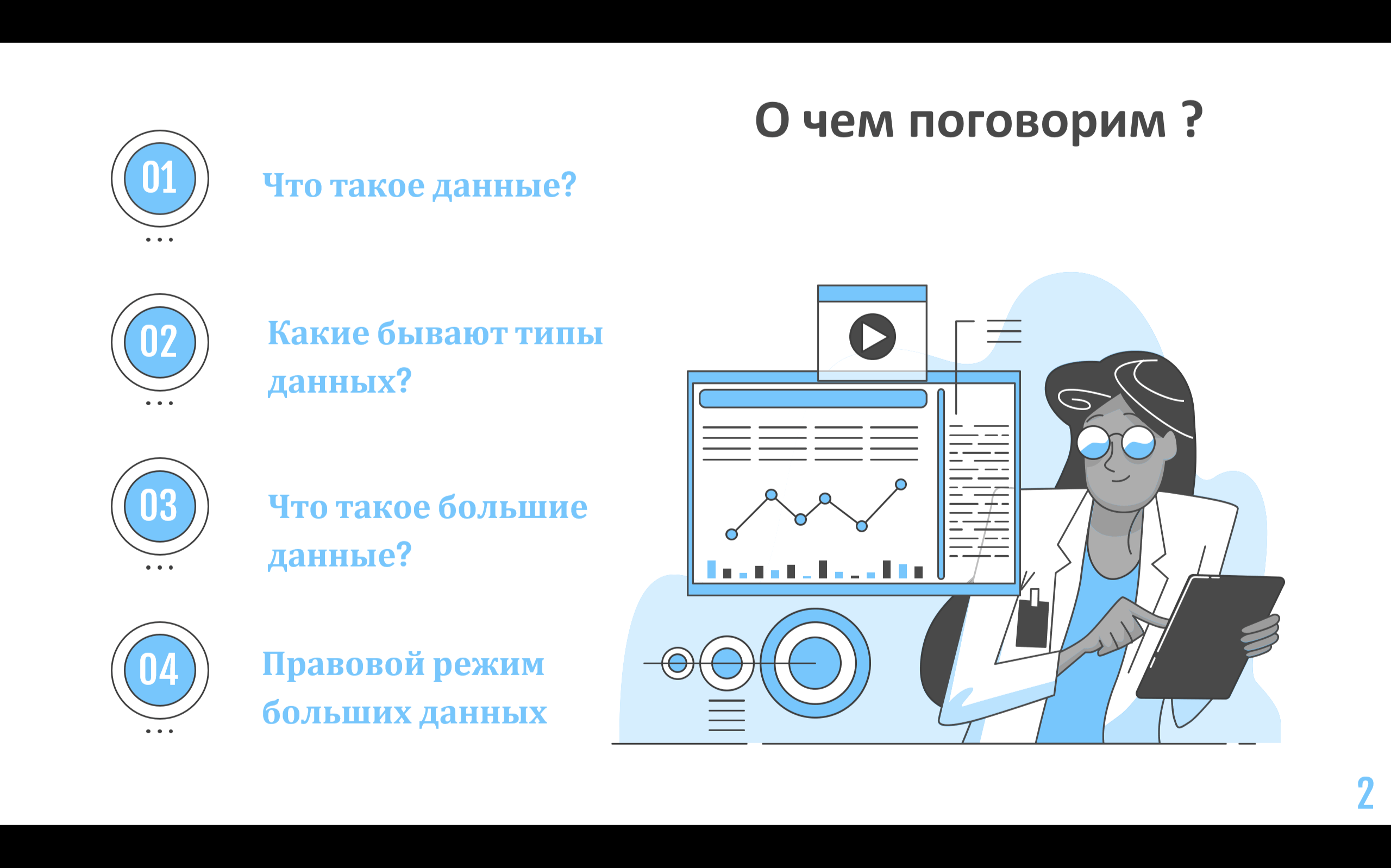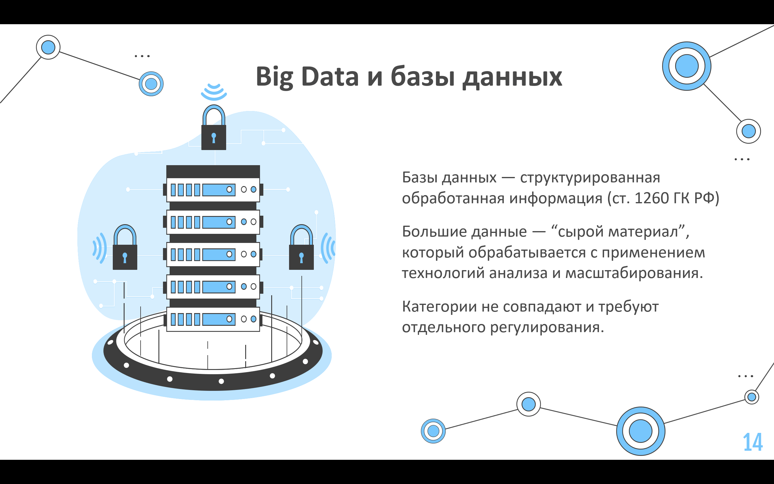 Подготовить доклад и презентацию по правовому режиму больших данных, рассказать в целом что такое большие данные, так чтобы это было понятно человеку далекому от IT