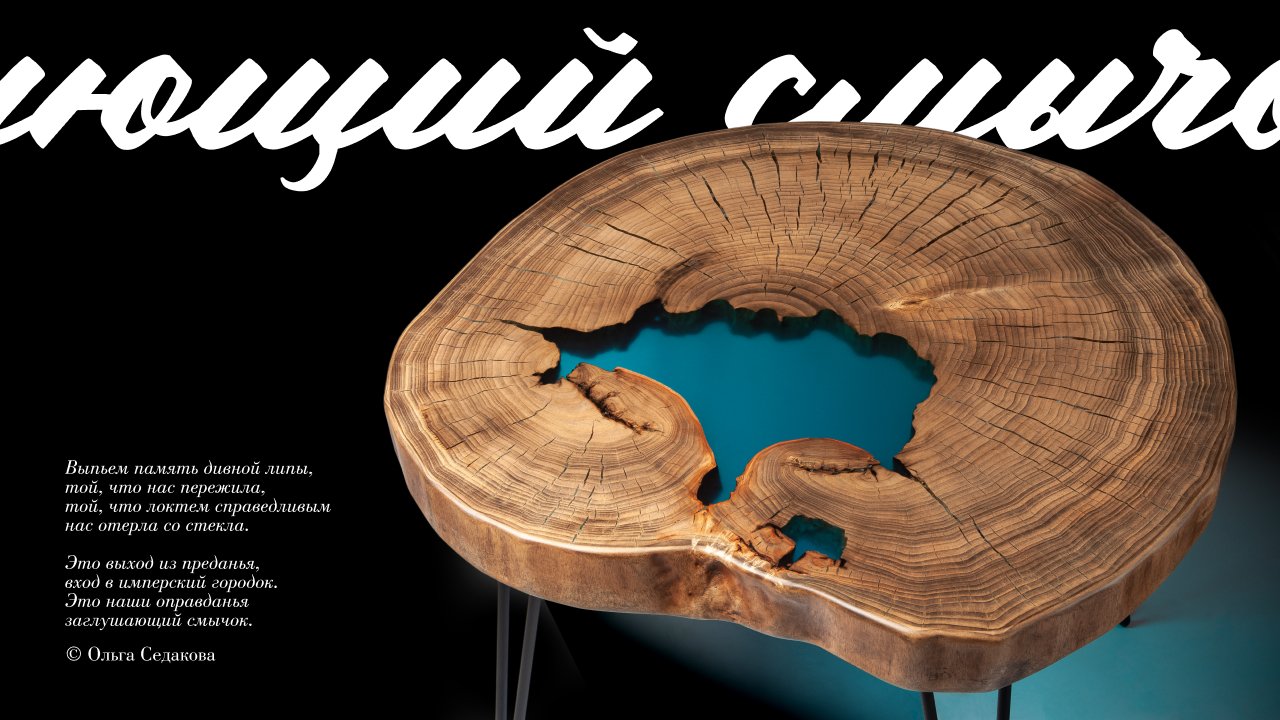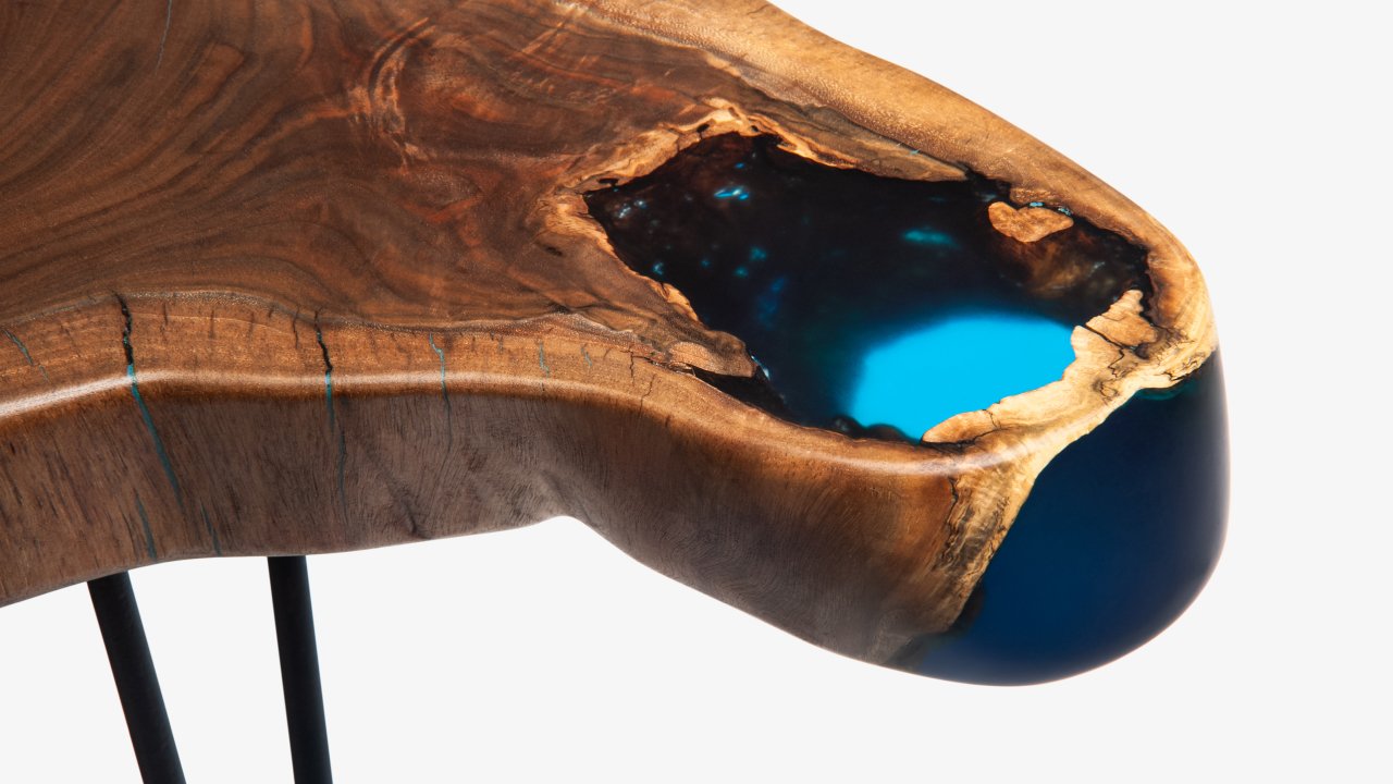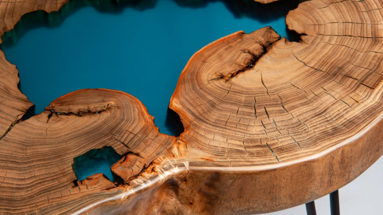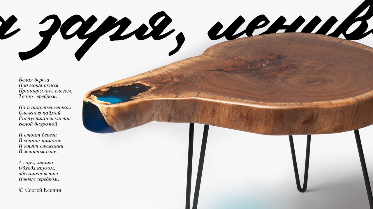 Создать визуальный контент для каталога и социальных сетей, который подчеркнёт премиальный характер мебели ручной работы и эстетическую ценность сочетания дерева и эпоксидной смолы.