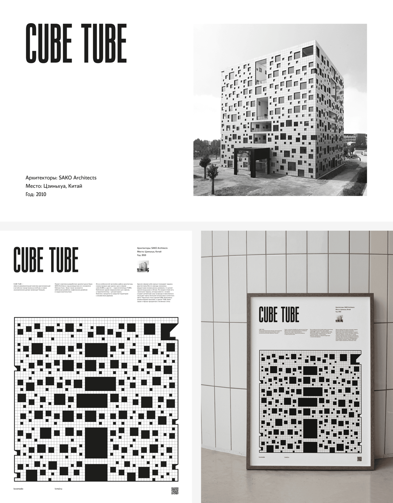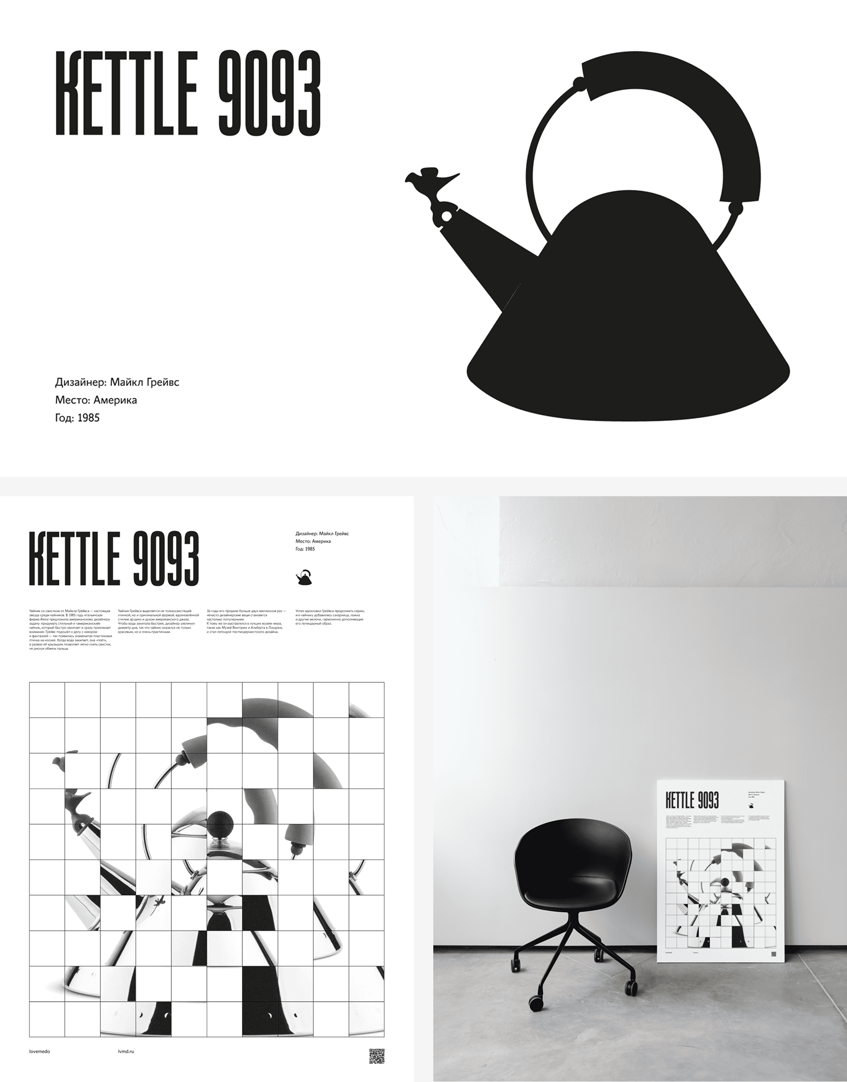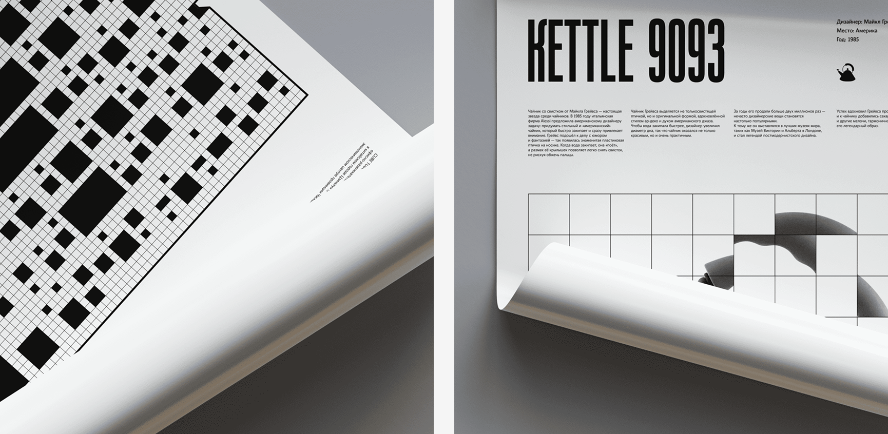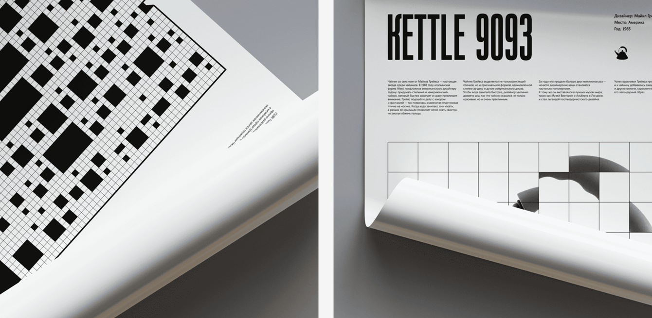 В итоге получились простые и лаконичные плакаты, которые можно использовать как декор интерьера. Главным объектом на каждом плакате выступает какой-то знаковый объект дизайна или архитектуры — как из прошлого, так и из современности. Лаконичная иллюстрация, название и короткий текст с общей информацией — и ничего лишнего.