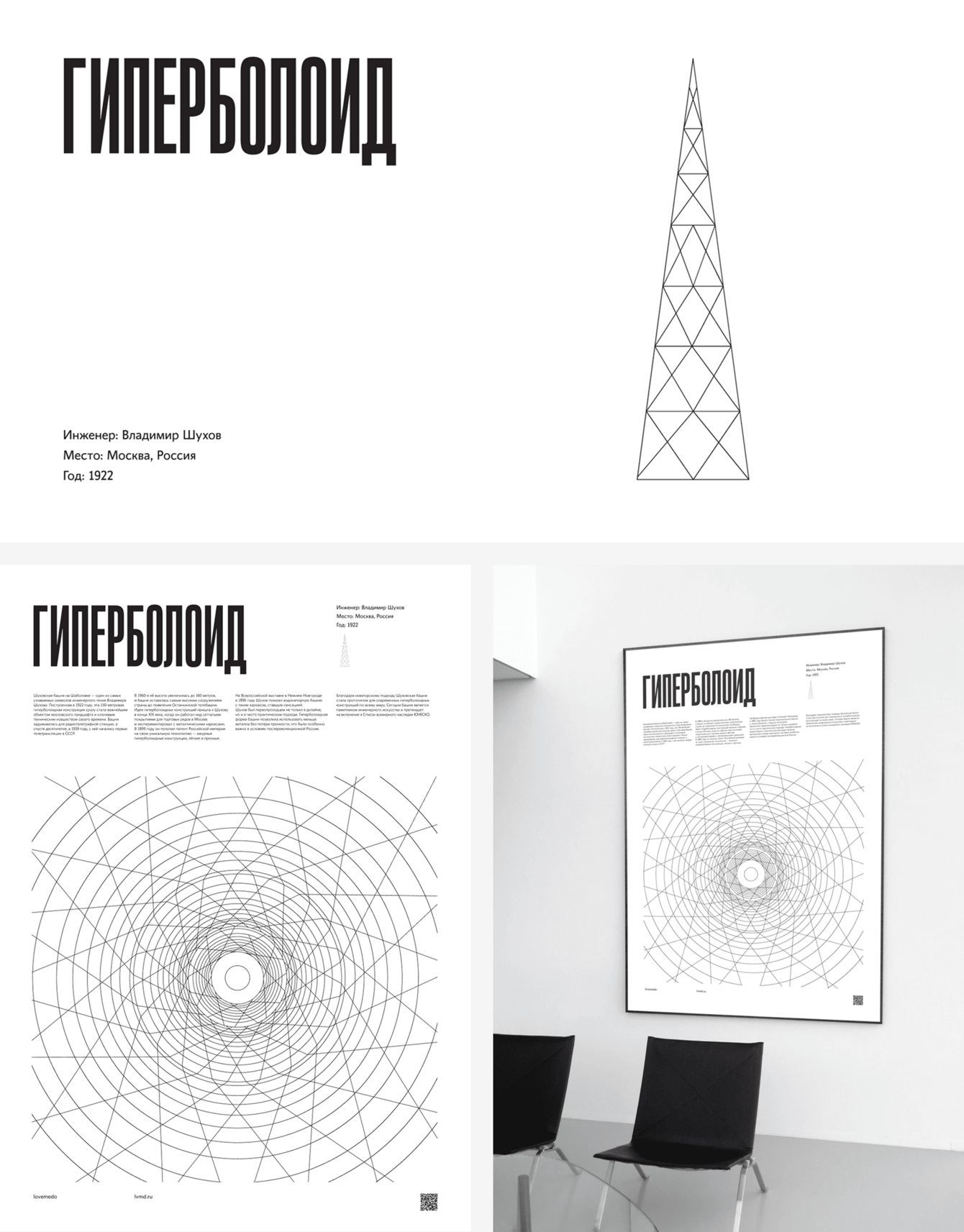 На Всероссийской выставке в Нижнем Новгороде в 1896 году Шухов показал водонапорную башню с таким каркасом, ставшую сенсацией. Шухов был первопроходцем не только в дизайне, но и в чисто практическом подходе. Гиперболоидная форма башни позволила использовать меньше металла без потери прочности, что было особенно важно в условиях послереволюционной России.