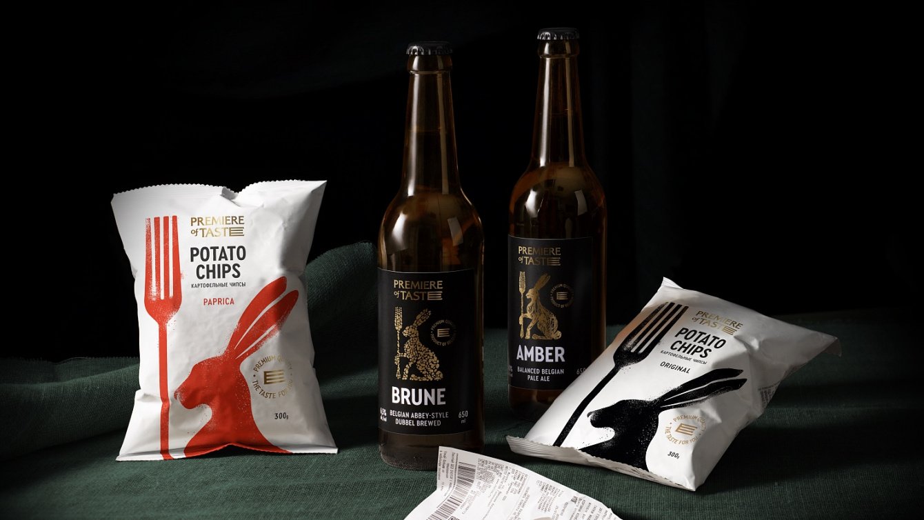 Сдержанность, простота и достоинство – все эти качества на протяжении многих лет отражают образы благородных семейных кланов и географических мест. Образ зайца был выбран, чтобы отразить темп FMCG, давние ассоциации с геральдикой, источающей роскошь и утонченность. Визуальная система взаимодействует с категориями продуктов, создавая динамику. Заяц с вилкой привлекает внимание, запоминается и выделяется среди конкурентов. Его размеры, стилистика исполнения и формат присутствия на упаковке может изменяться в зависимости от продукта. Во всех вариациях ему удается обеспечить целостное восприятие всей линейки. Минималистичный стиль подчеркивается «сквозным» использованием элемента, напоминающего зубчики вилки. Его можно найти в самой вилке, в начертании логотипа и в клейме, заявляющем страну происхождения продукта.