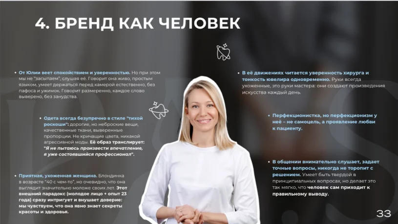 Для разработки TOV мы вдохновлялись личностью основателя и главного врача — Юлии Ивановны и использовали фразы, которые от нее действительно можно услышать в обычной повседневной речи (мы выписывали их на первых созвонах).