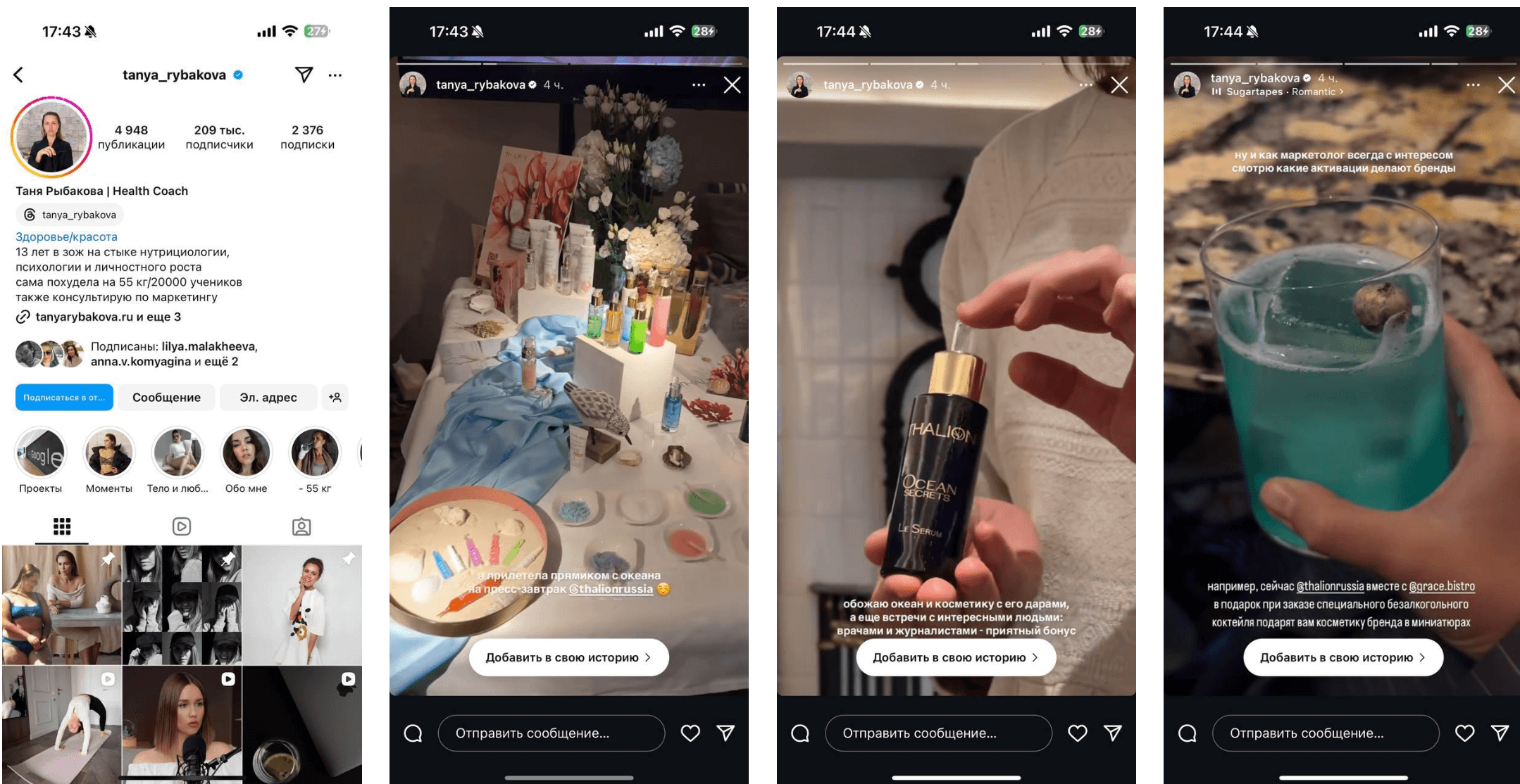 При заказе фирменного безалкогольного коктейля Heart of the Ocean каждый гость GRACE bistro получал в подарок 2 миниатюры для ухода за кожей от THALION: Увлажняющая наполняющая маска THALISOURCE, 15 мл, Липидовосстанавливающая маска NUTRIMARINE, 15 мл.